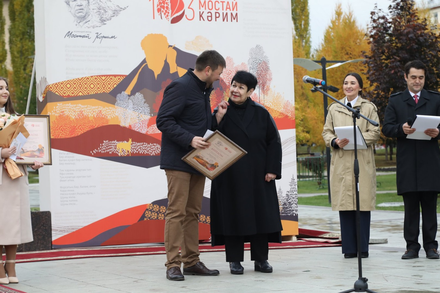 Первый заместитель министра культуры Наталья Лапшина отметила, что творчество Мустая Карима вдохновляет людей, помогает в труде и борьбе, помогает воспитывать детей и молодежь. Она поблагодарила Фонд им. Мустая Карима, культурные и образовательные учреждения, которые помогают сохранять великое наследие.