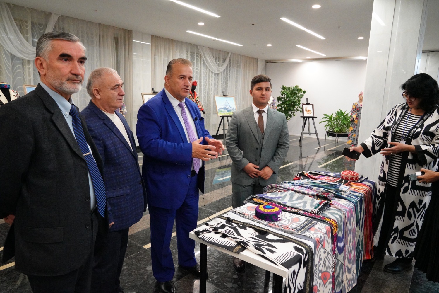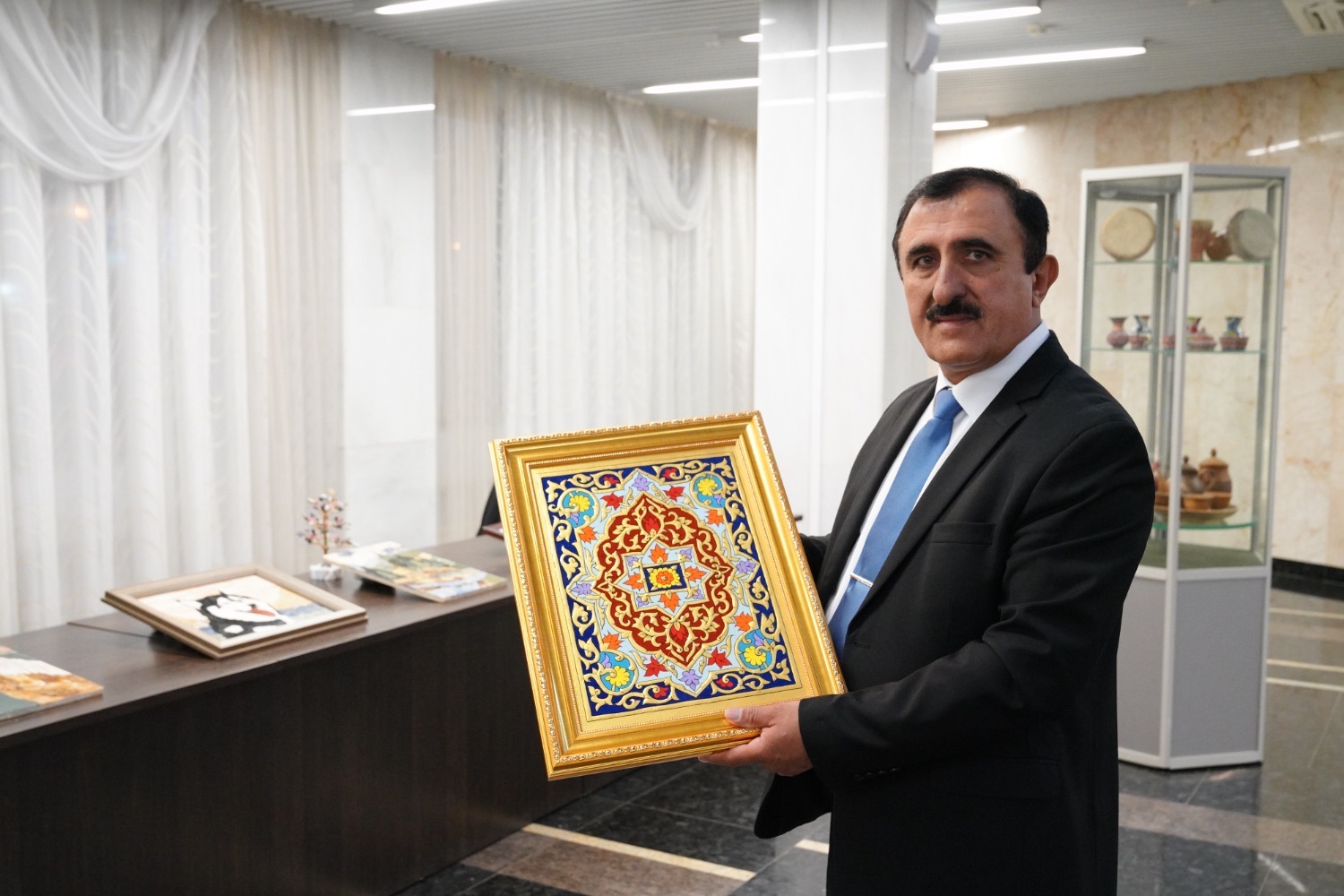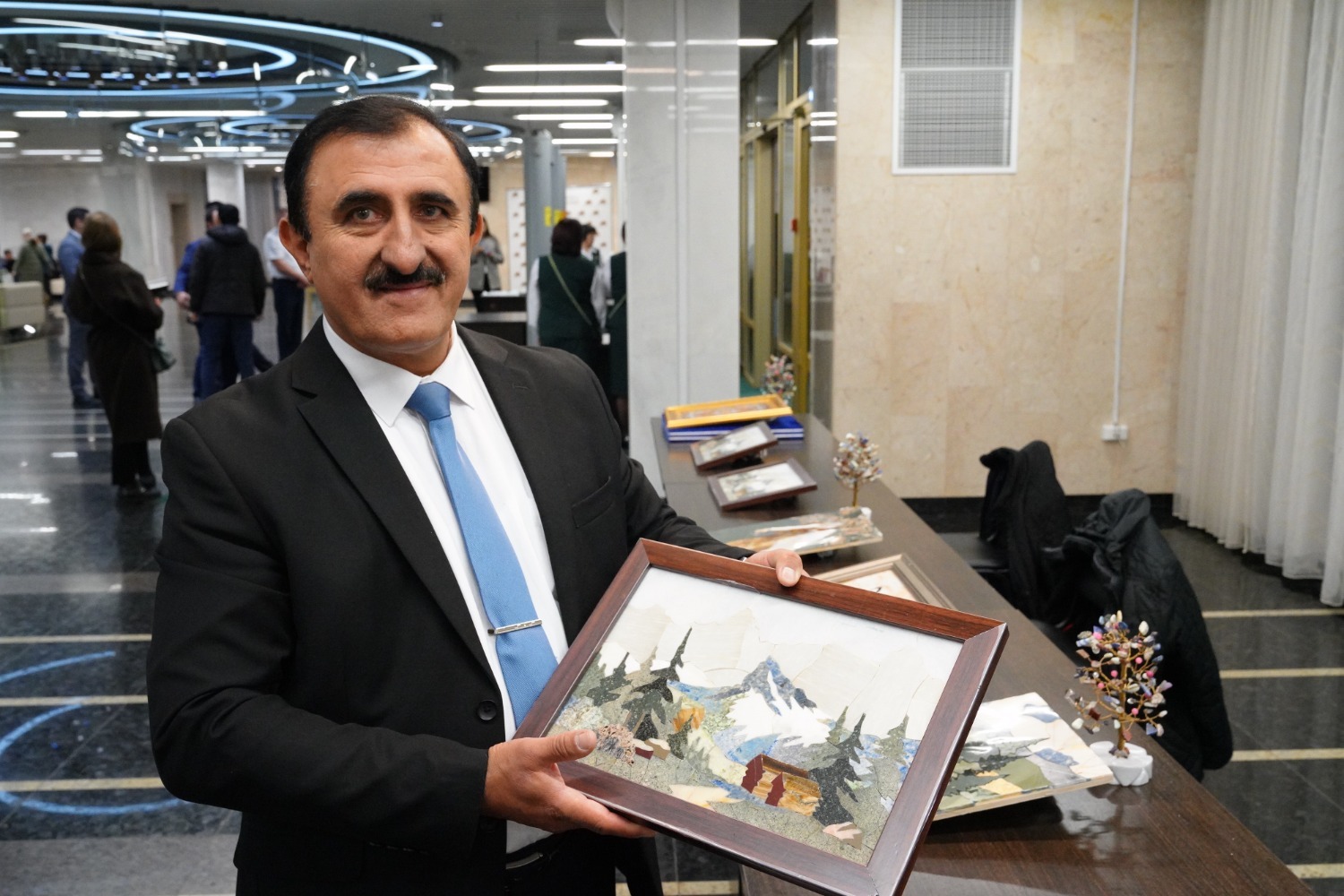 — Мы привезли с собой картины с национальным орнаментом, сделанные из камней, из каменной крошки. Мрамор, лазурит, черный мрамор, змеевик, кальцит, оникс, другие камни — всё, что у нас есть в горах. Авторы разные, работают в нашем объединении. В одной картине примерно тысяча деталей, - отметил заместитель генерального директора объединения «Рухом» Хошим Мухабатов.