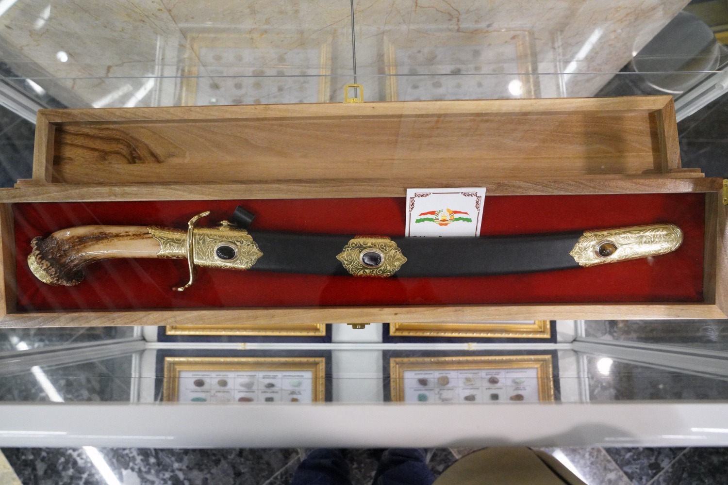 Зрители могли полюбоваться самоцветами Таджикистана, увидеть некоторые таджикские музыкальные инструменты, изделия из керамики, дерева, кинжал, национальные тюбетейки, джурабы (носки) - всё ручной работы.