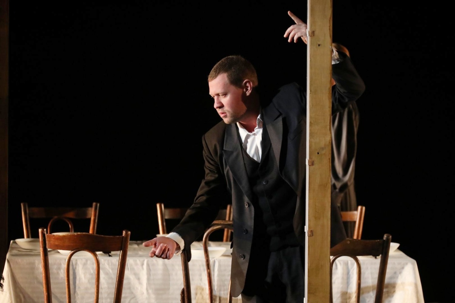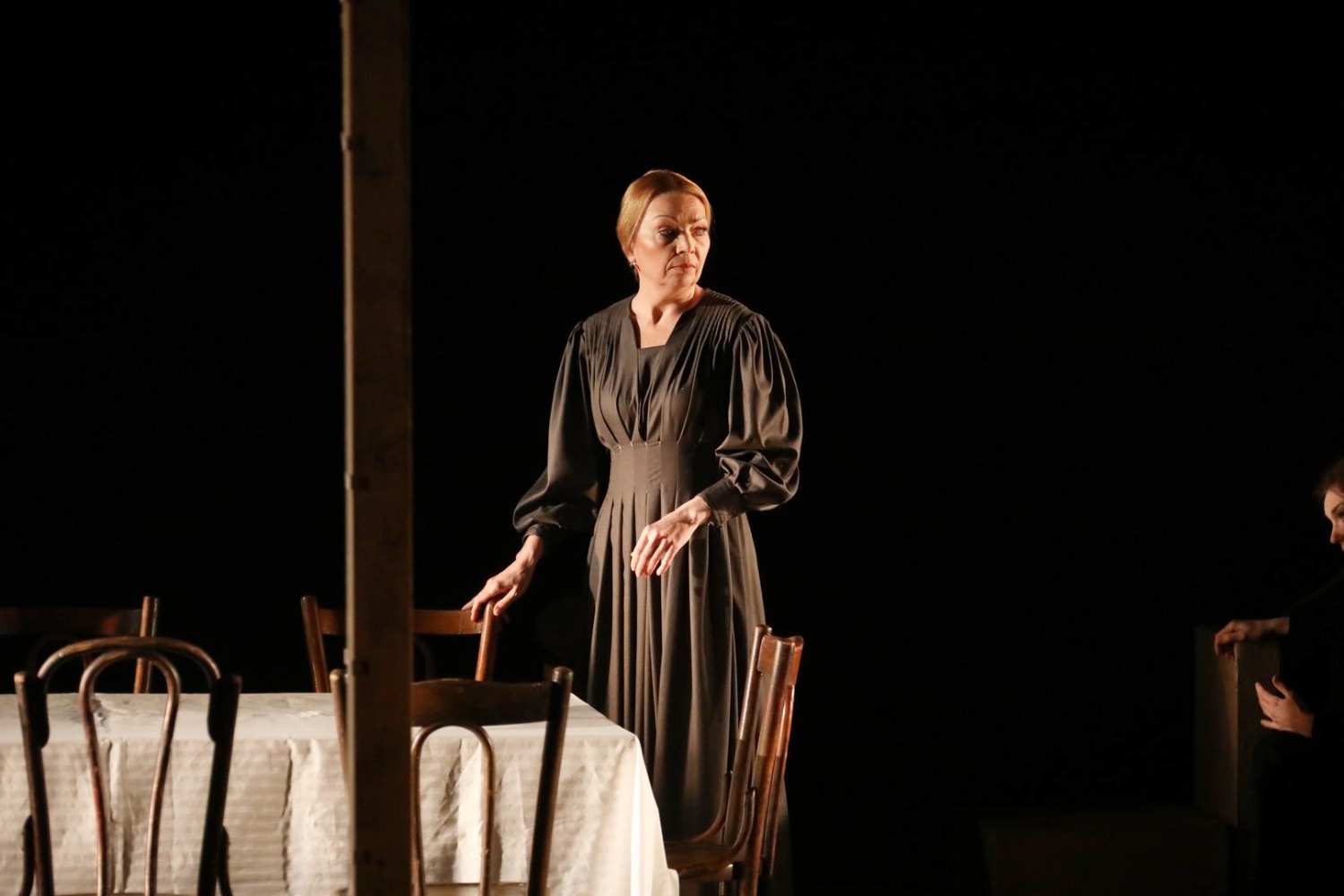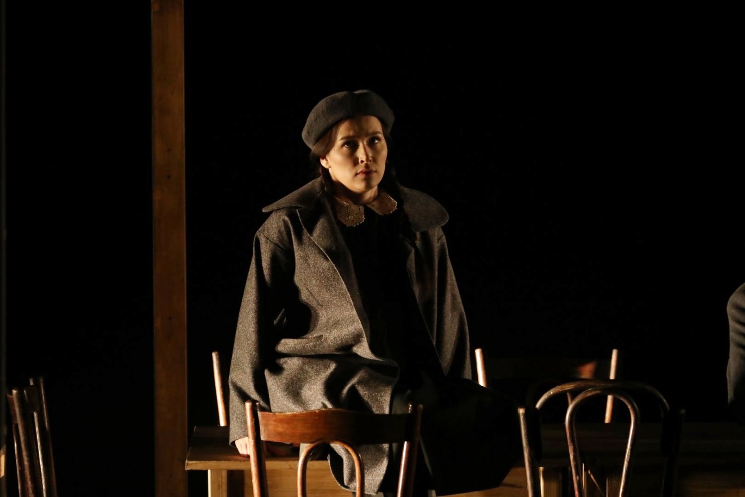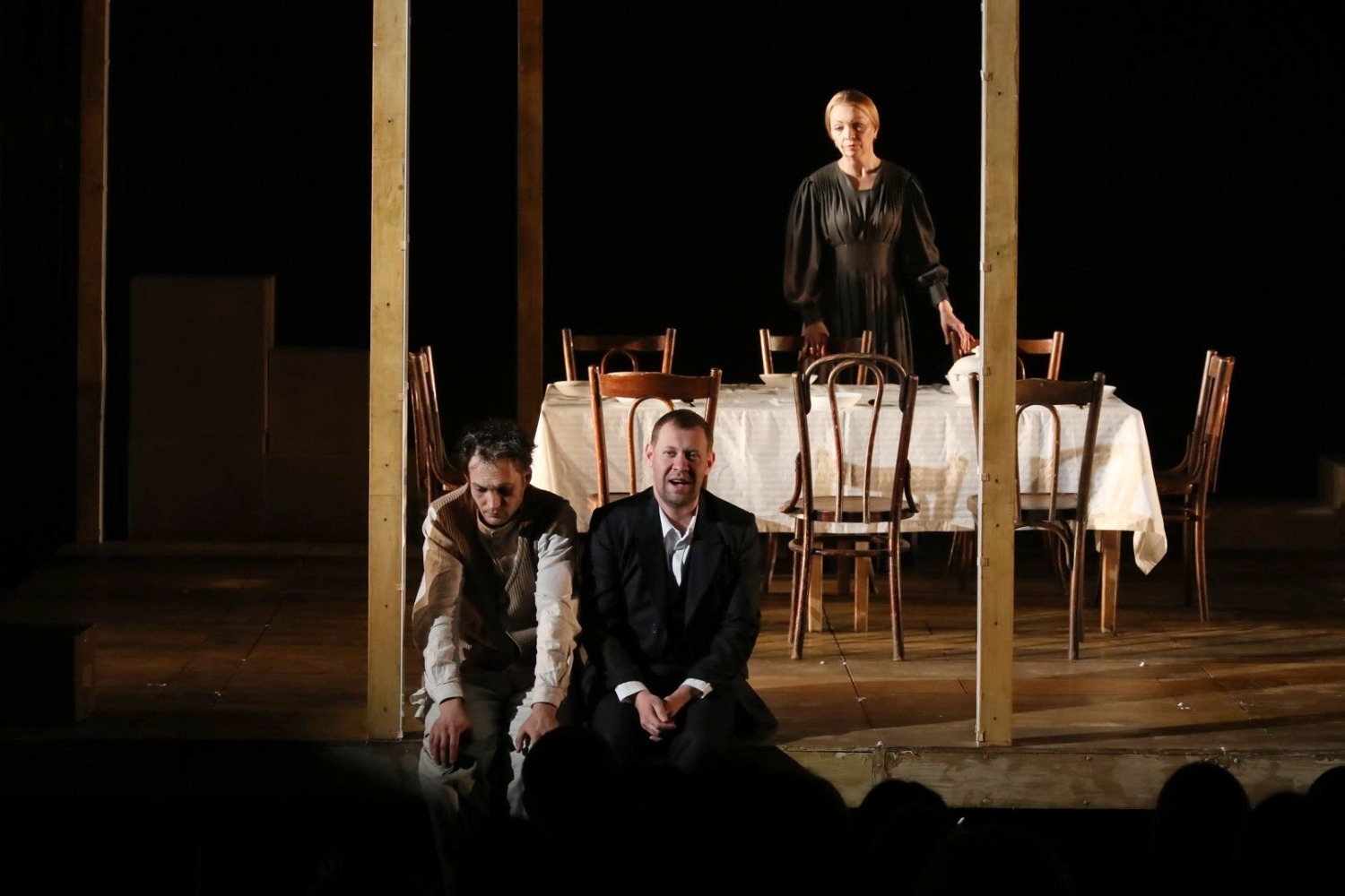 Для создания спектакля собралась команда единомышленников из Санкт-Петербурга — художник-постановщик Александр Мохов, художник по костюмам Мария Лукка, художник по свету Игорь Фомин. Действие захватывает пространство не только сцены, расширенной за счет первого ряда, но и зрительного зала. Сразу погружают в размышления декорации, где в основе пять прямоугольных арок — словно пять эшафотов пяти несчастных детей, когда у каждого свой крест, своя судьба, своя виселица. Если в первом акте еще сохраняется обманчивая целостность дома — с его традиционным убранством в виде стола, стульев, кровати, умывальника и даже пианино, — во втором иллюзия рушится, на сцене остаются только пять арок, пугающих и неотвратимых. Черно-белая графика декораций и костюмов позволяет сосредоточиться на главном — мысли.