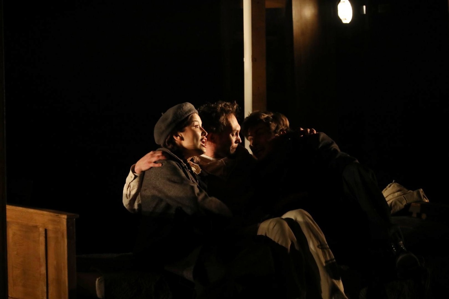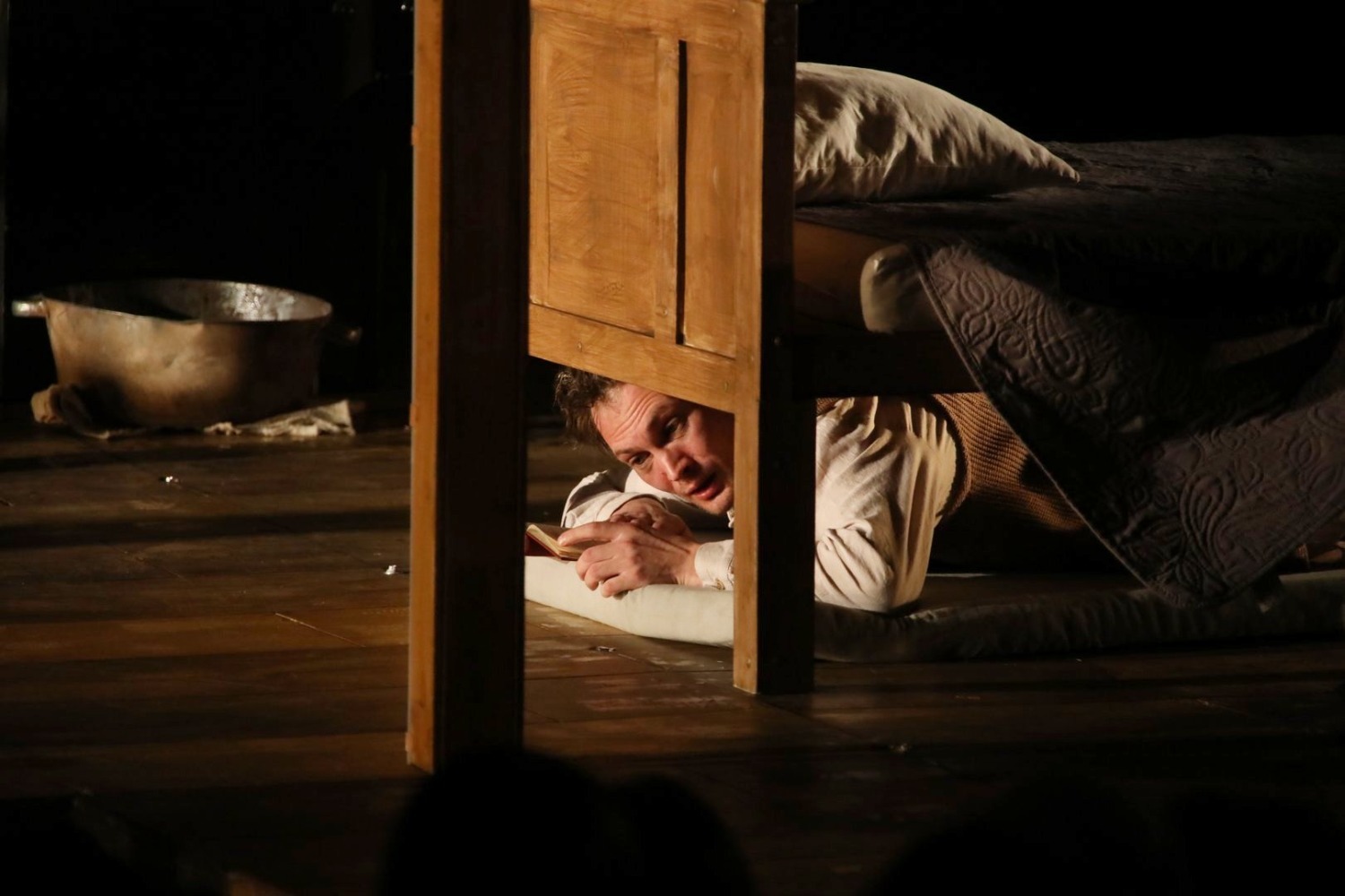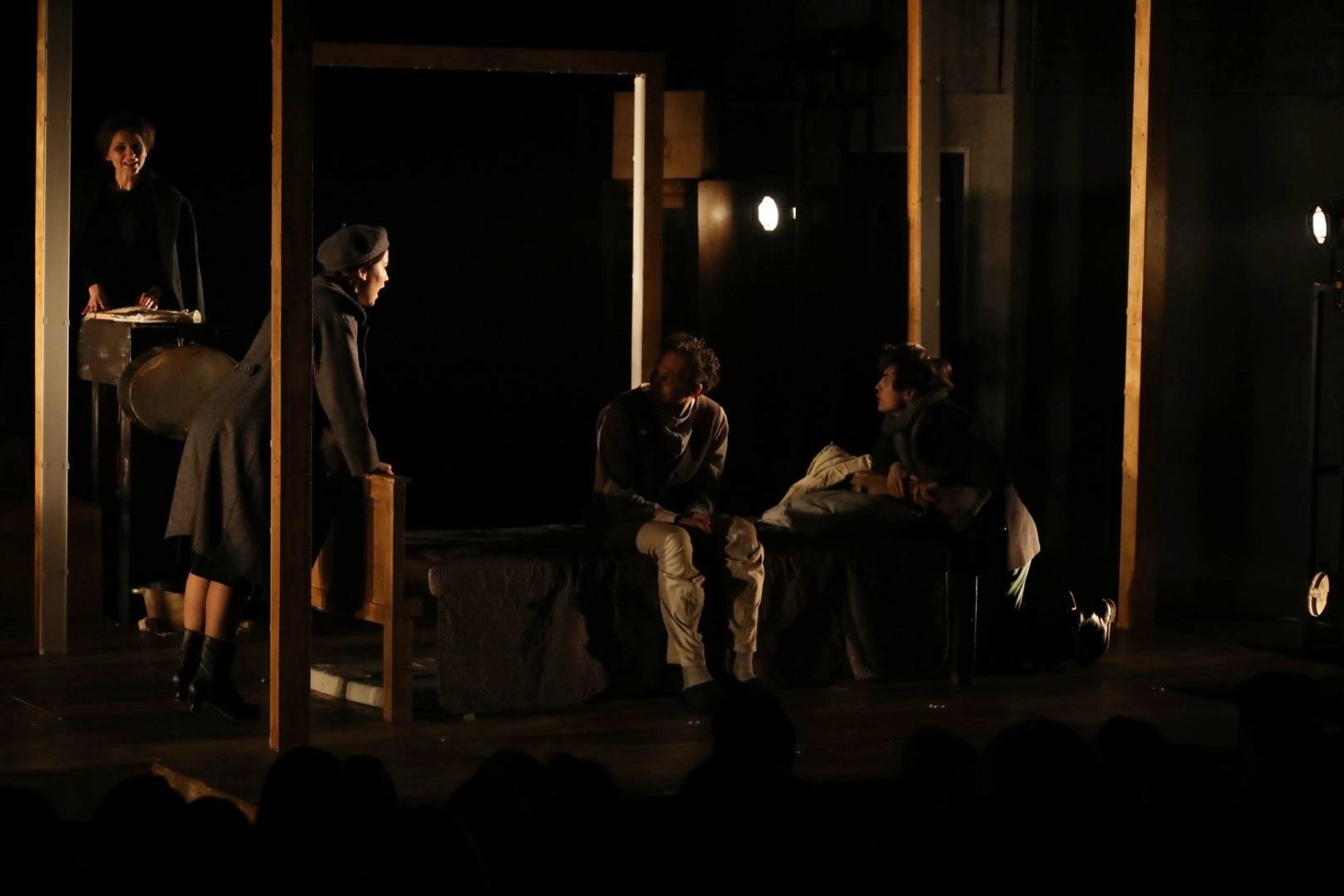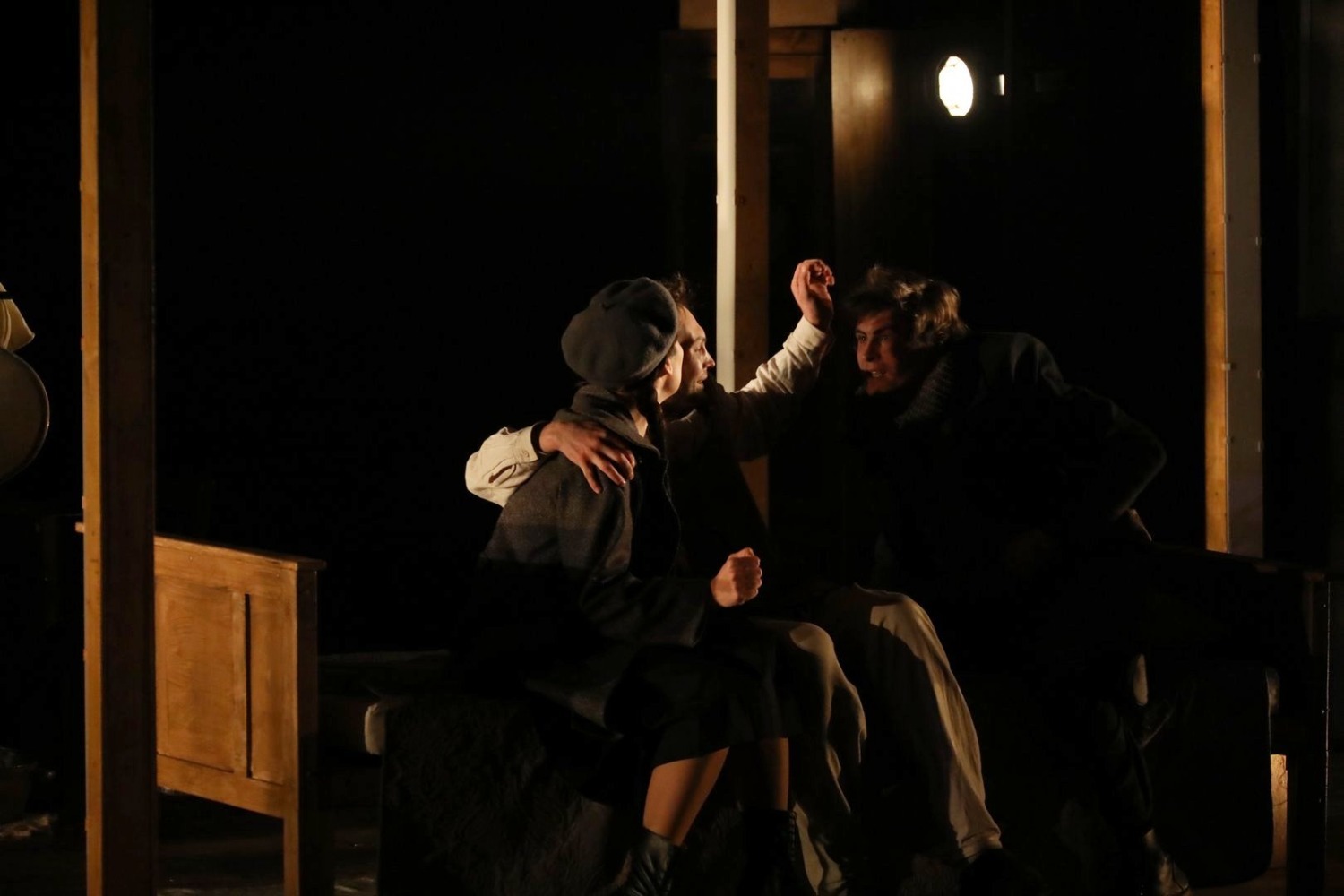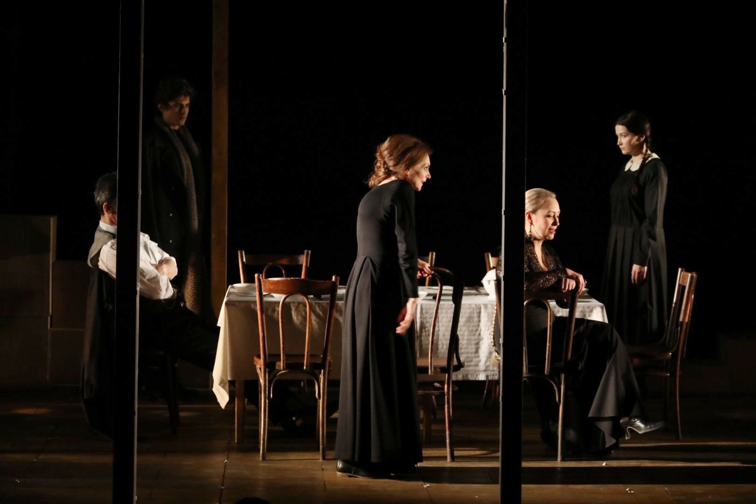 Для создания спектакля собралась команда единомышленников из Санкт-Петербурга — художник-постановщик Александр Мохов, художник по костюмам Мария Лукка, художник по свету Игорь Фомин. Действие захватывает пространство не только сцены, расширенной за счет первого ряда, но и зрительного зала. Сразу погружают в размышления декорации, где в основе пять прямоугольных арок — словно пять эшафотов пяти несчастных детей, когда у каждого свой крест, своя судьба, своя виселица. Если в первом акте еще сохраняется обманчивая целостность дома — с его традиционным убранством в виде стола, стульев, кровати, умывальника и даже пианино, — во втором иллюзия рушится, на сцене остаются только пять арок, пугающих и неотвратимых. Черно-белая графика декораций и костюмов позволяет сосредоточиться на главном — мысли.