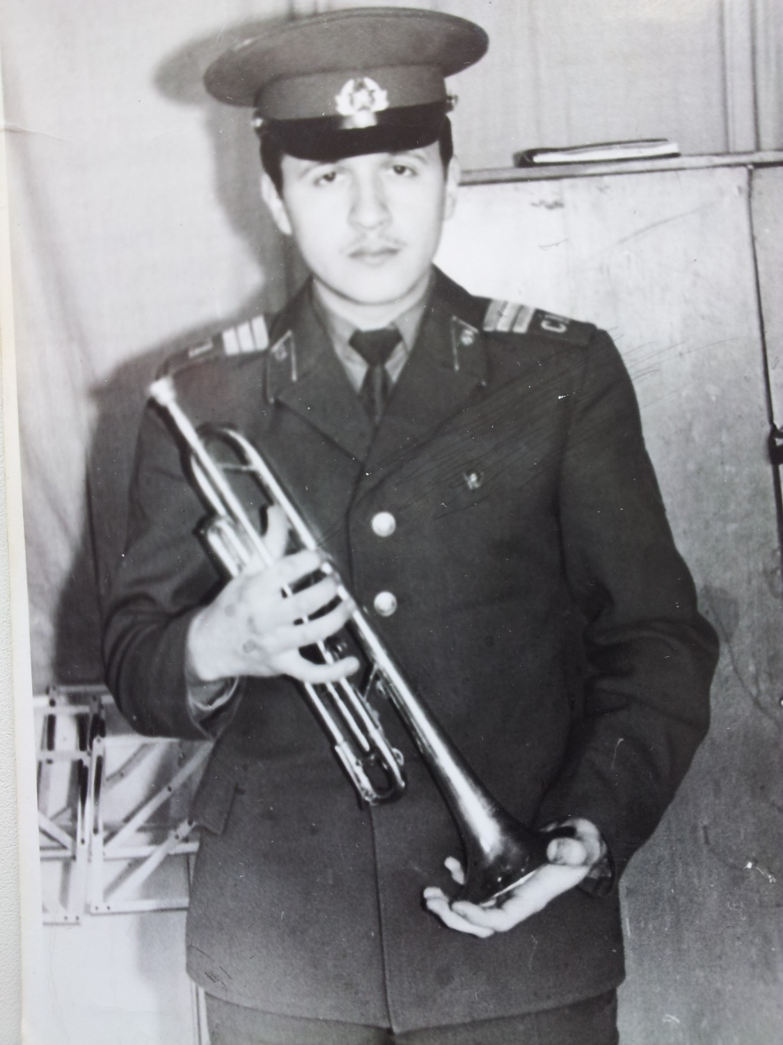 - После первого курса института меня призвали в армию – как раз нежданно вышел приказ Минобороны забирать всех студентов. Это был шок. В основном все студенты попали на службу не в оркестры, а в учебки. Я попал в Куйбышев (Самара) в пехотную часть и полгода провел с автоматом и гранатомётом. Там меня, благодаря судьбе, «вычислил» дирижер и забрал к себе в военный оркестр. Я всегда, всеми правдами и неправдами улучив момент, бегал в военный оркестр и тайком занимался на трубе. За это меня в роте строго наказывали, но я скучал по инструменту до слез!