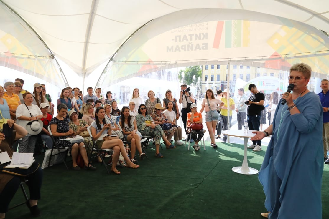 В первый день международной книжной ярмарки «Китап-байрам» в Уфе, 26 мая, на Советской площади состоялась встреча известной российской писательницы, автора детективных романов и телеведущей Татьяны Устиновой со своими читателями.