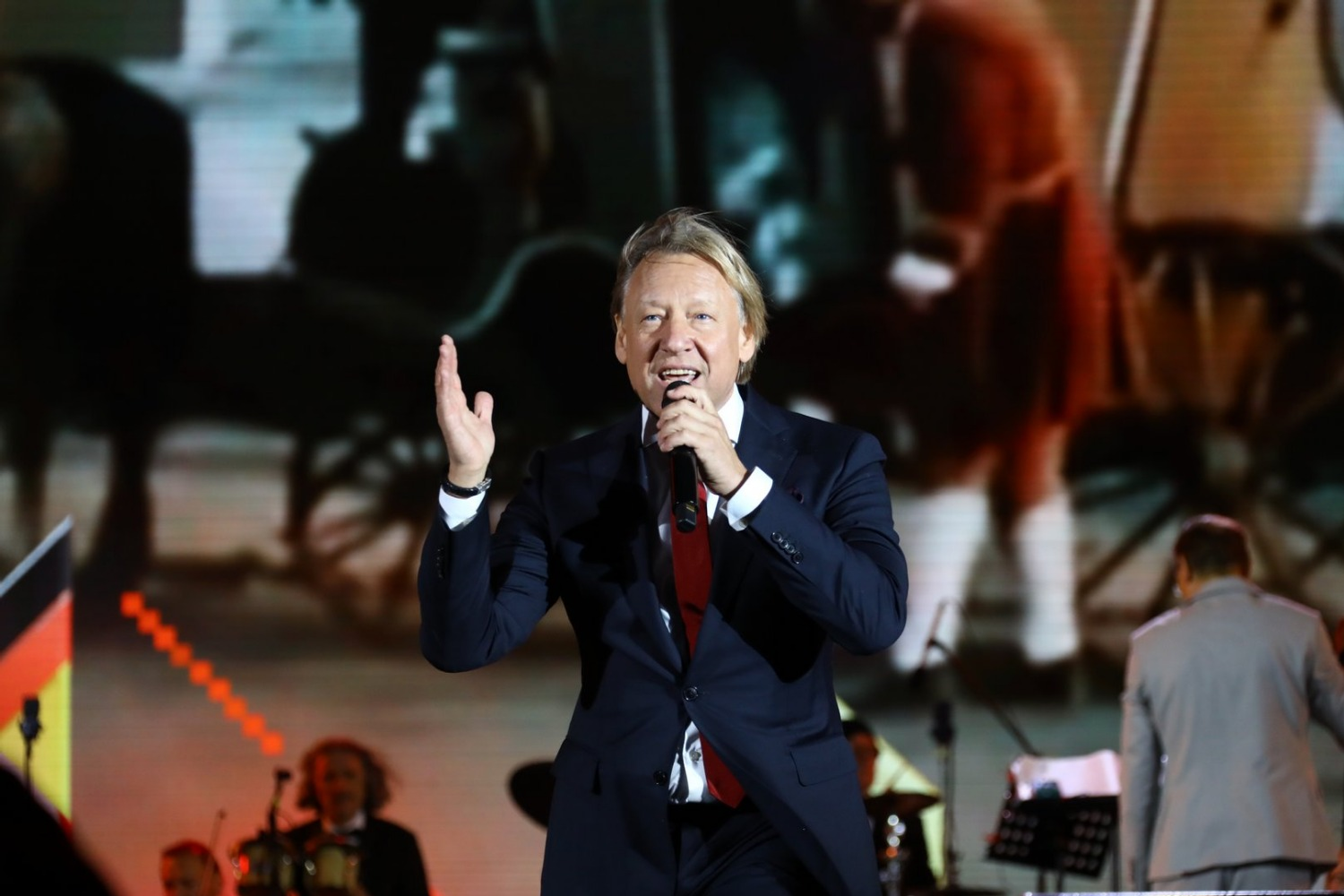 Актер и певец, народный артист России Дмитрий Харатьян сегодня вечером порадовал жителей Уфы и гостей региона своим выступлением в амфитеатре конгресс-холла «Торатау». Он стал хедлайнером первого дня фестиваля «Сердце Евразии», который проходит в Уфе в рамках форума регионов России и Беларуси. Кроме того, на пару с народной артисткой РБ Рушанной Бабич он провел программу в качестве ведущего. Перед концертом Дмитрий отметил, что он уже не в первый раз в Уфе.