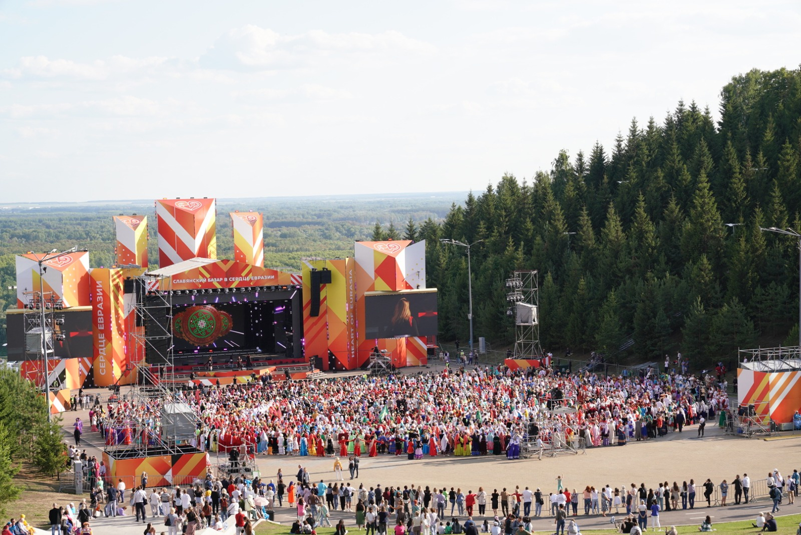 Во вторник в Уфе состоялась встреча двух фестивалей — «Славянский базар» и «Сердце Евразии». Во второй день мероприятия был поставлен мировой рекорд по самому массовому хороводу в национальных костюмах.