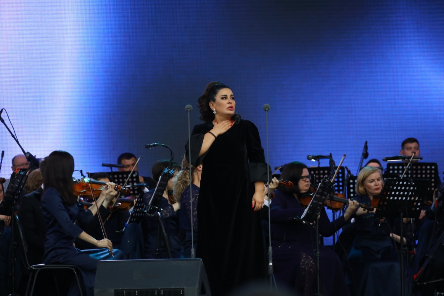 Концерт прошел в амфитеатре конгресс-холла «Торатау». Певица пела в сопровождении Национального симфонического оркестра Республики Башкортостан.