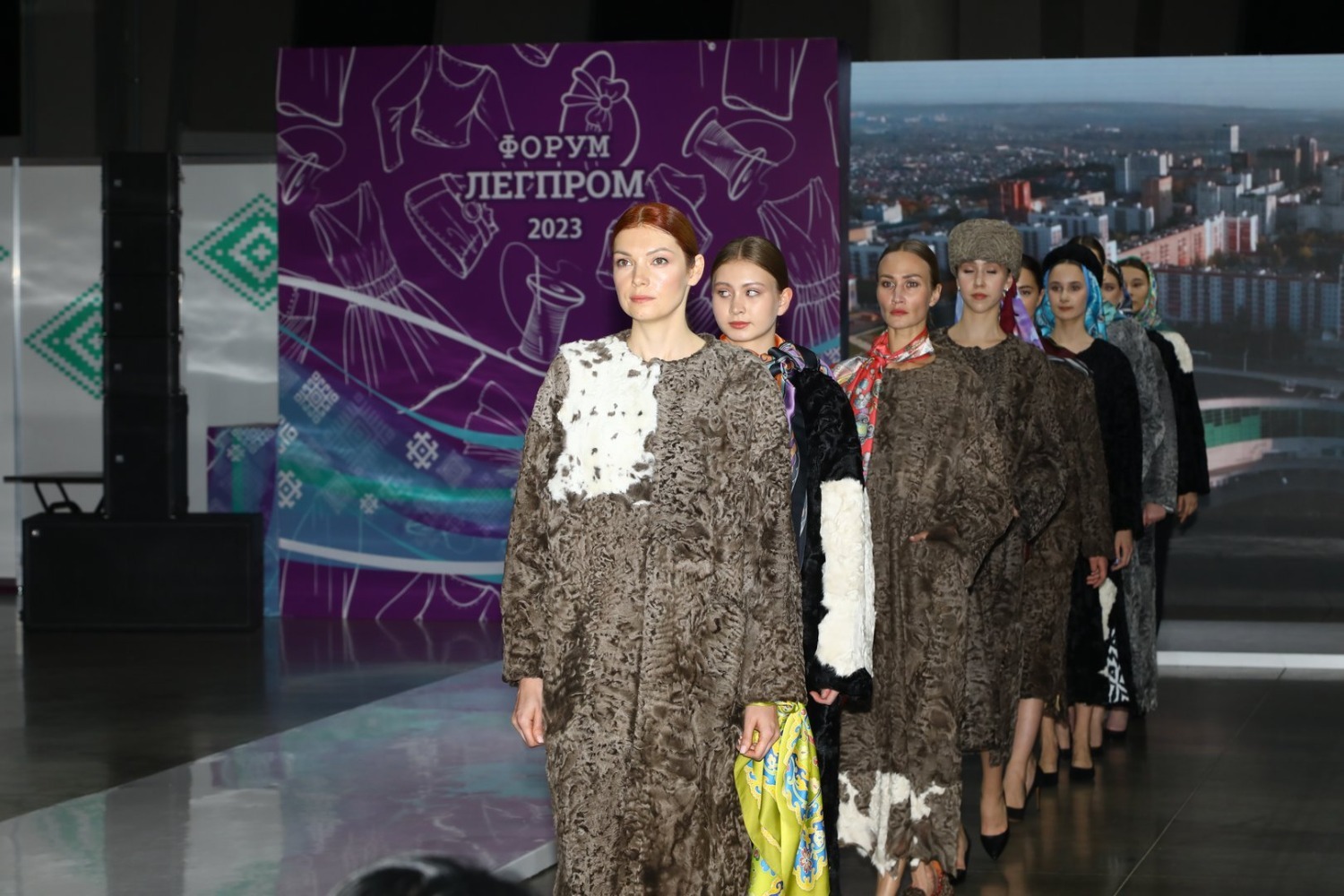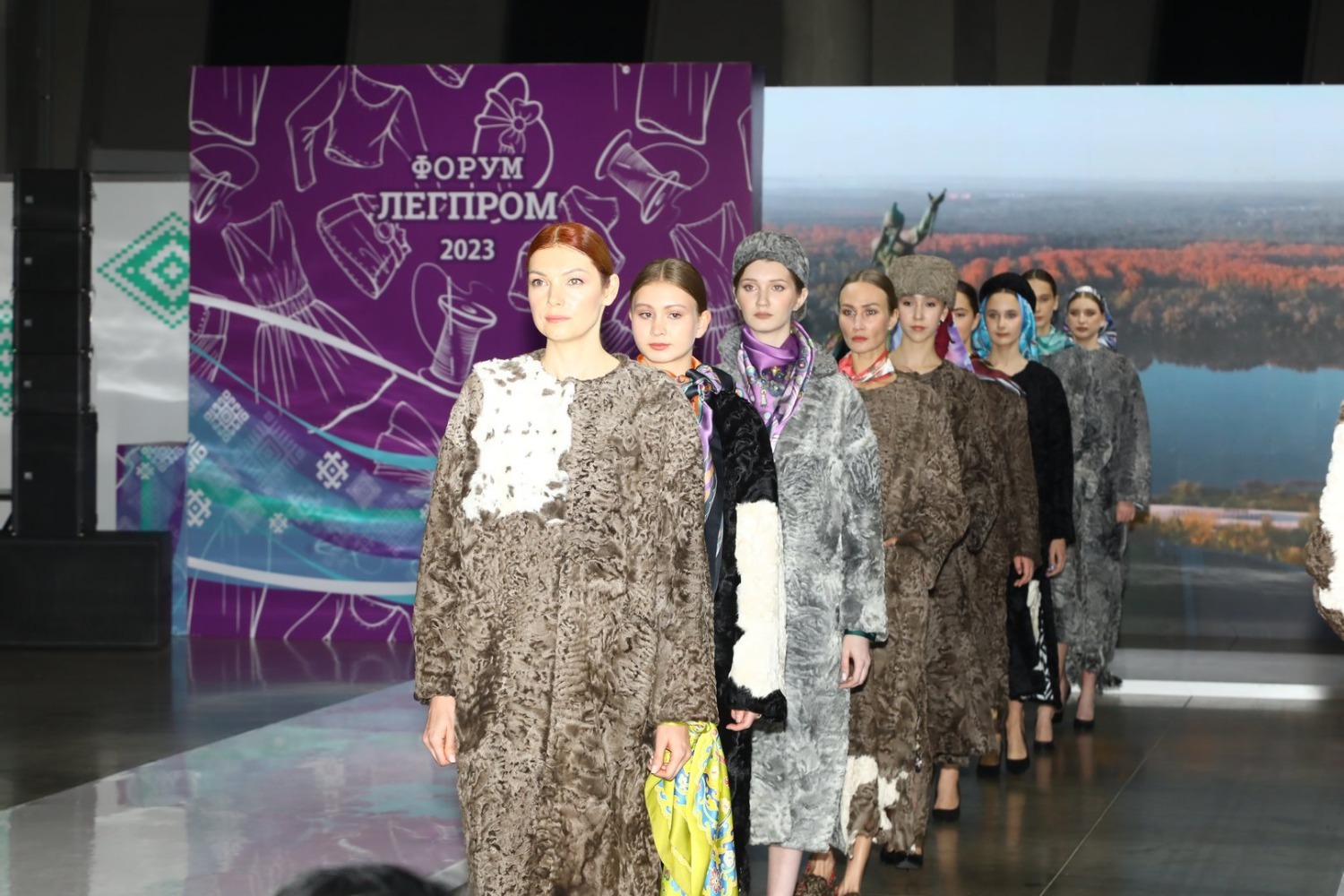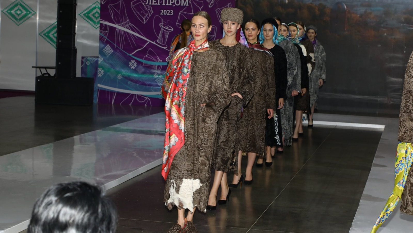 Специально для уфимского показа модельер создала коллаборацию с башкирскими расписными шелковыми платками ГУП БХП «Агидель». 12 легких каракулевых шуб идеально украсили платки «Жемчужина Башкортостана», на которых представлены природные и рукотворные достопримечательности республики.