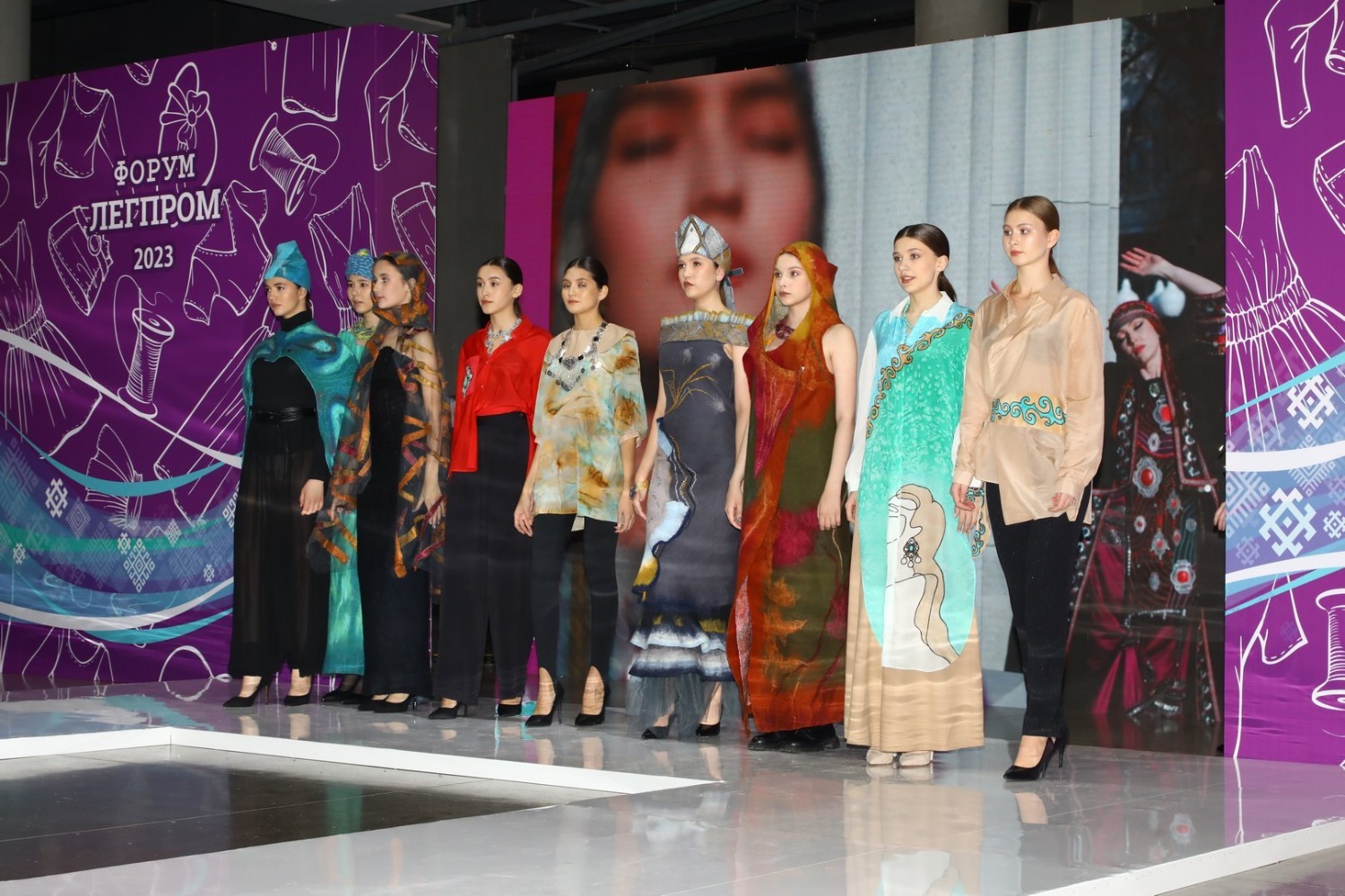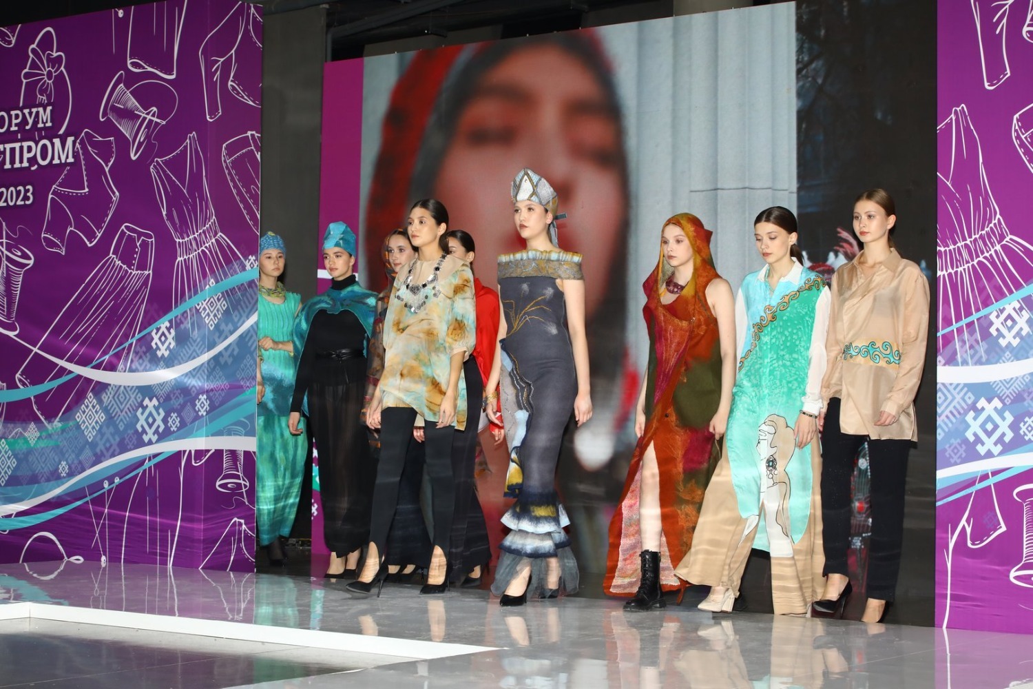 Интерес зрителей вызвала мужская коллекция из Дагестана, в которой национальные элементы одежды (головные уборы папахи, кафтаны архалуки) гармонично встроены в современную молодежную моду. А казахская коллекция ярких вечерних платьев на основе традиционной культуры привлекла внимание зрителей своим безудержным буйством колорита и роскошью национальных орнаментов.
