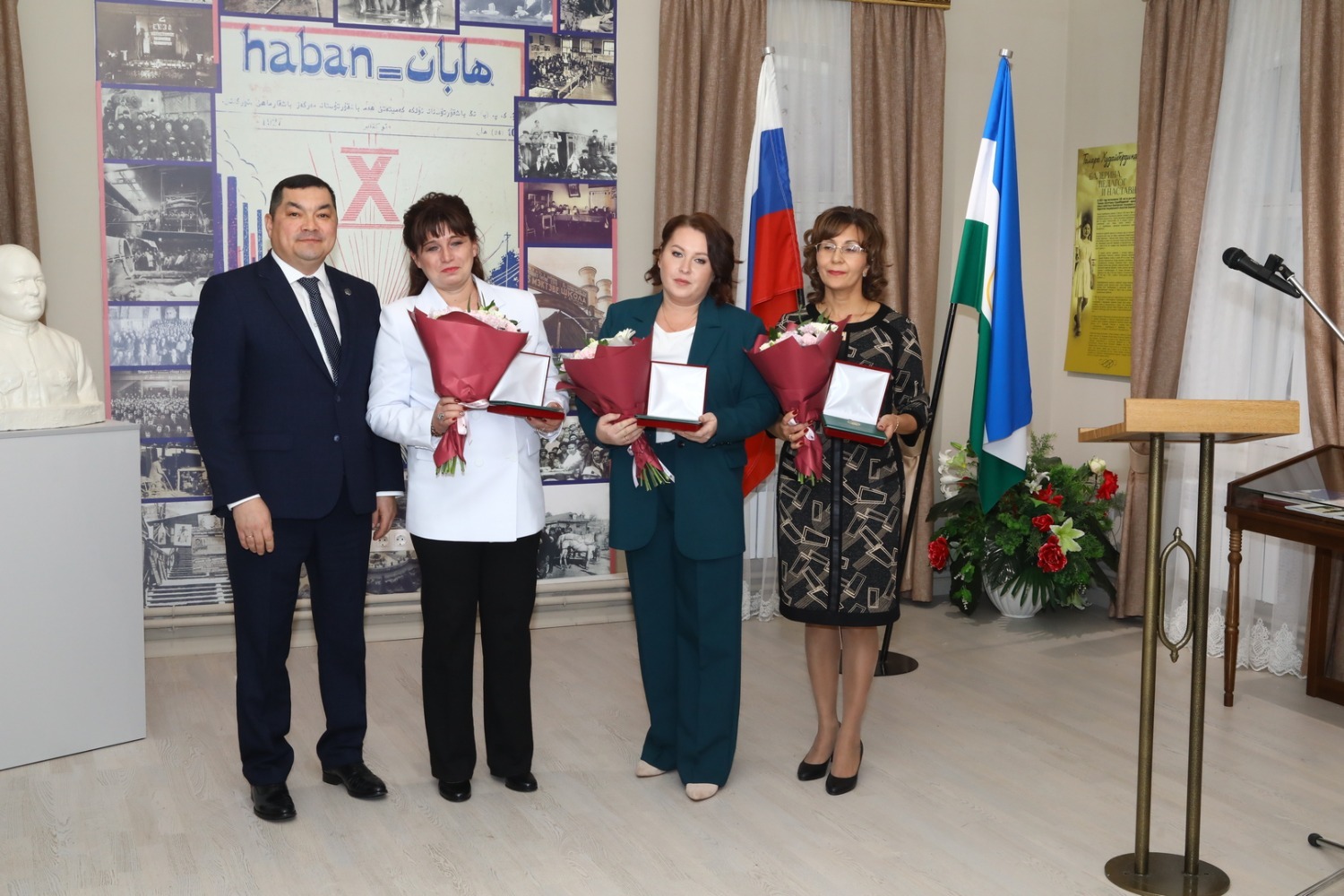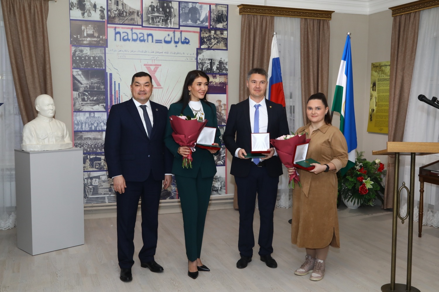 После окончания церемонии новоиспеченные лауреаты и почетные гости возложили цветы к находящемуся во дворе музея бюсту Шагита Худайбердина.