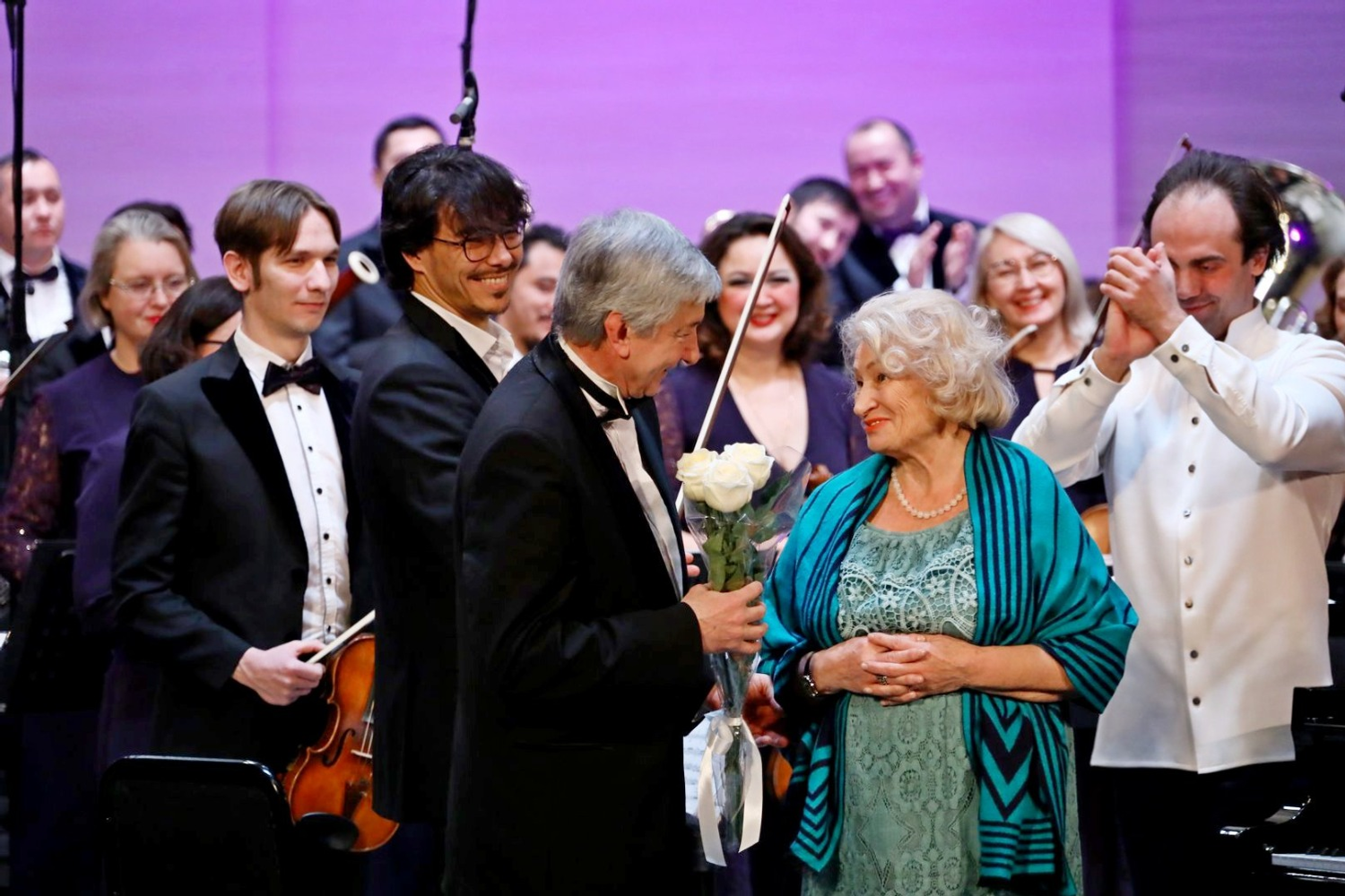 — Я поздравляю всех нас и вас, оркестр, его дирижера, руководителя, что они в начале декабря получили большое, серьезное звание. Это большой прорыв, и с другой стороны, ответственность, потому что академический оркестр уже не может играть средне, всегда должен выкладываться. Это их счастье, что они создают, транслируют эту музыку, сами должны получать удовольствие, громадную радость и сопричастность всему, что они делают на сцене.