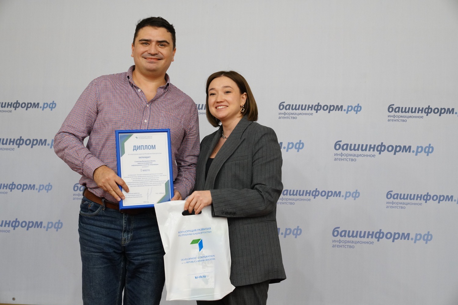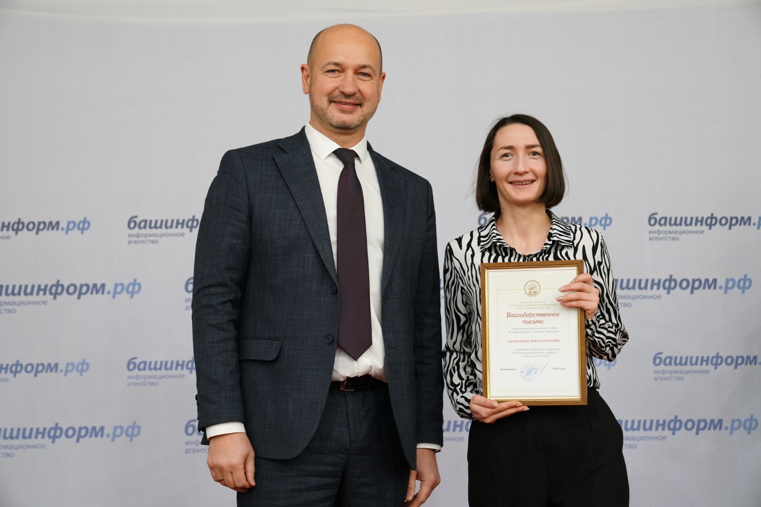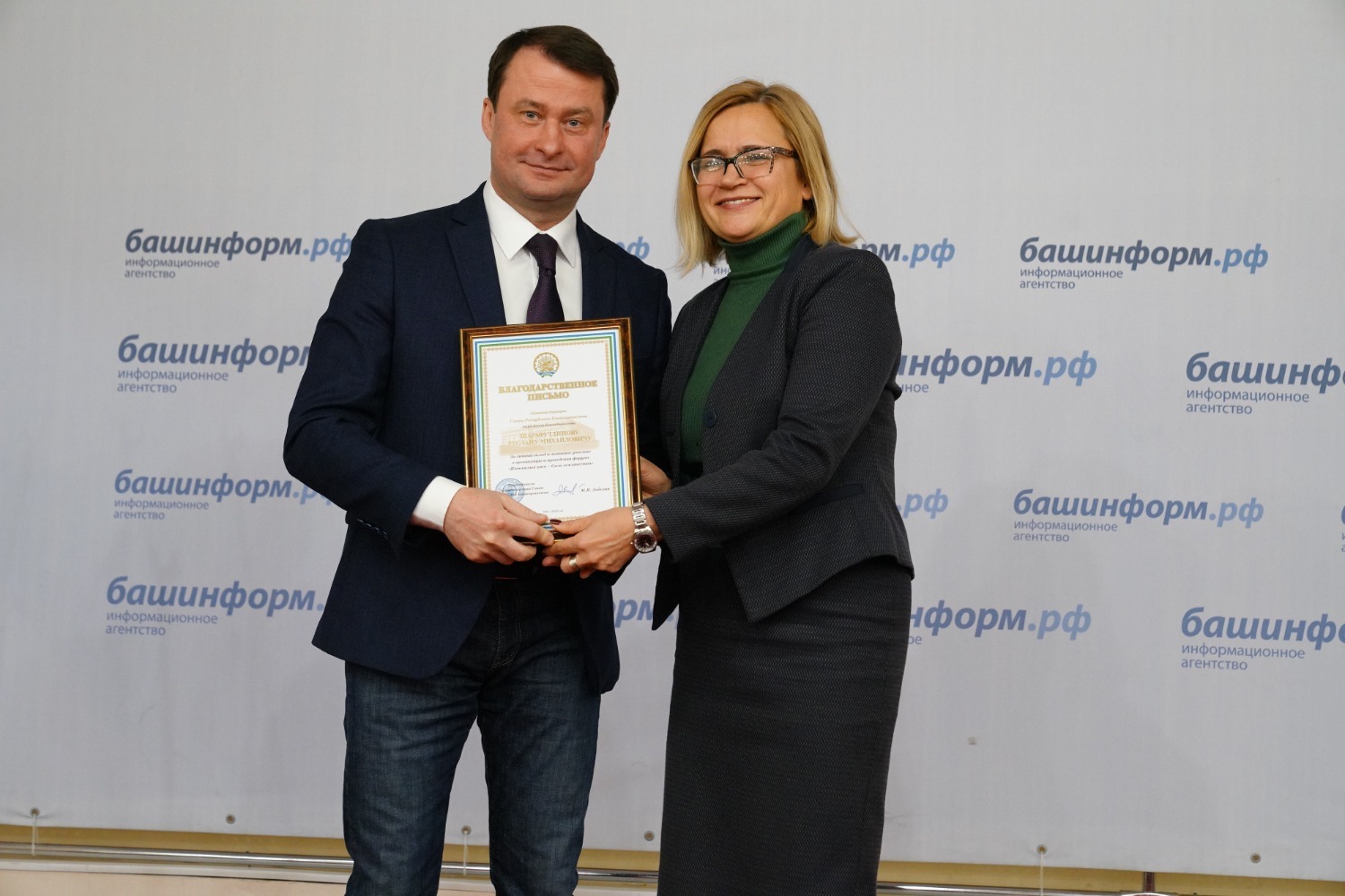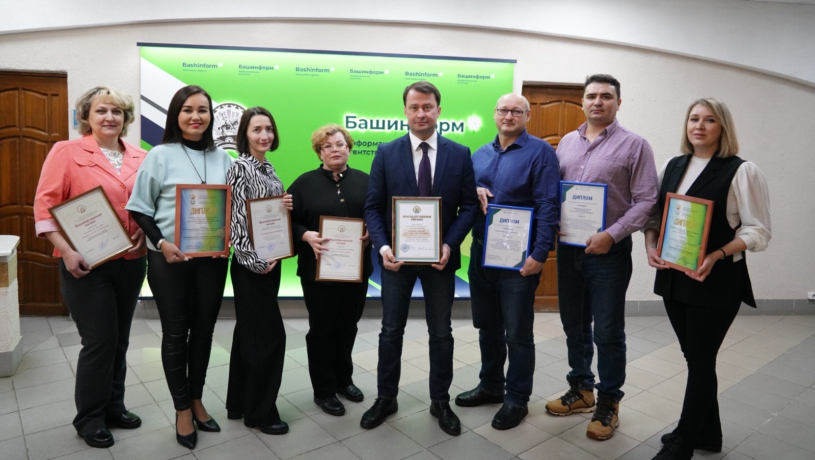 Информационное агентство «Башинформ» награждено по итогам республиканского конкурса журналистов за лучшее освещение Года полезных дел для малой родины. Благодарственное письмо руководителя администрации Главы республики Максима Забелина вручено главному редактору ИА «Башинформ» Руслану Шарафутдинову.