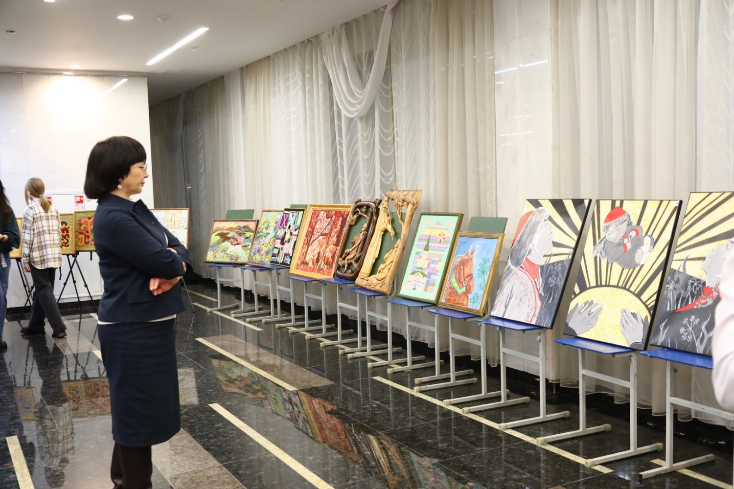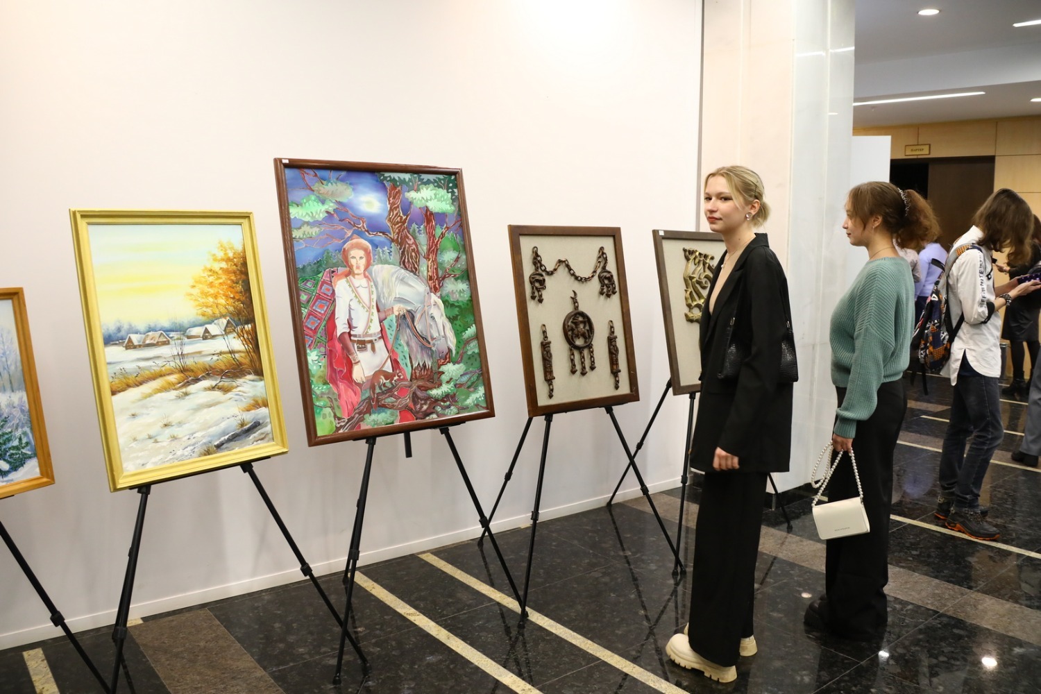 - Наши дети заинтересованы в изучении культуры, народно-художественных промыслов, музыки. Благодаря Пушкинской карте мы всё больше даем учащимся возможность познавать искусство. Мы планируем в дальнейшем постоянно проводить здесь свои выставки, - отметил директор учебного заведения Рамиль Кагиров.