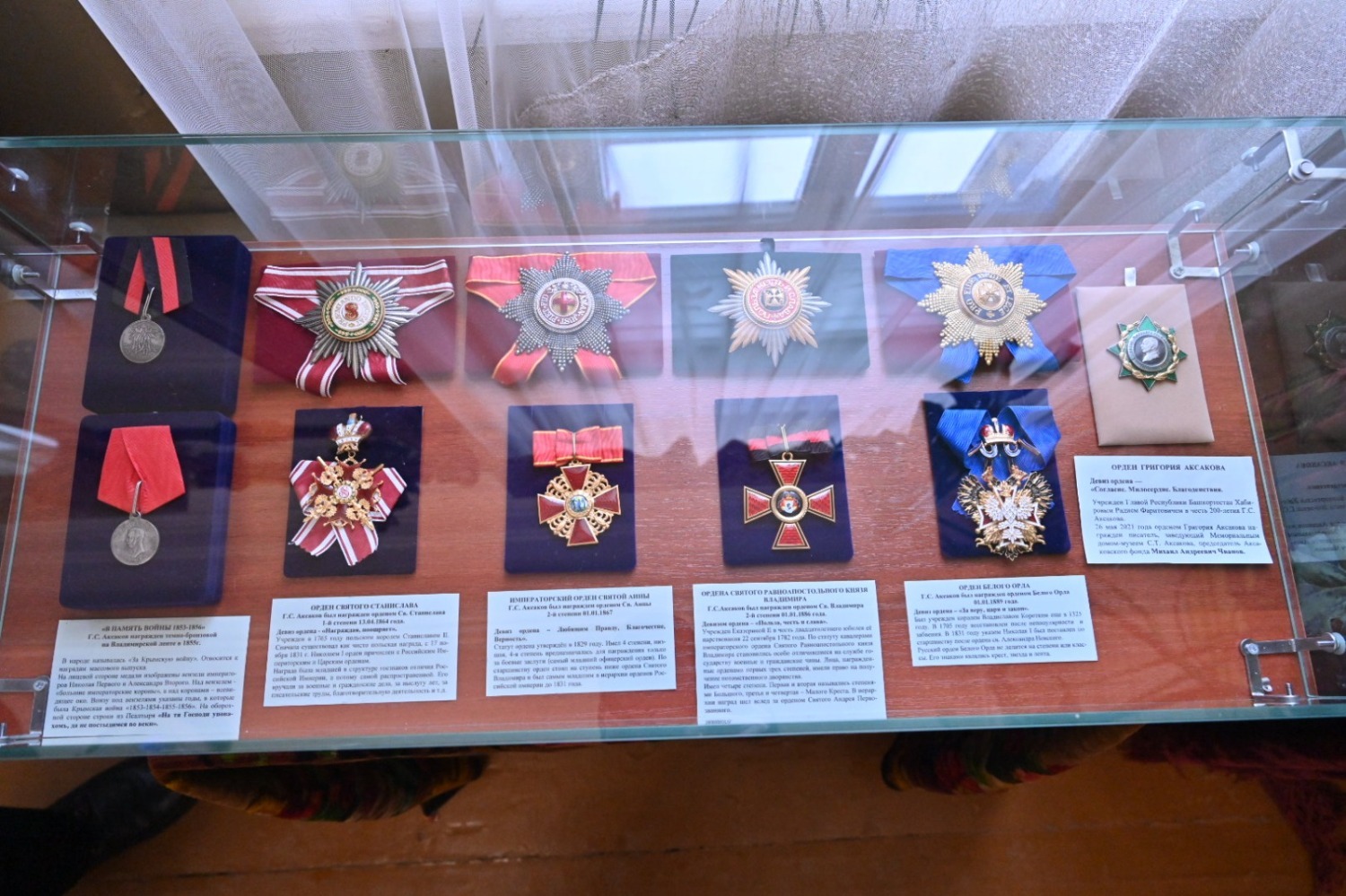 Старший научный сотрудник мемориального дома-музея Аксакова Татьяна Петрова во время экскурсии рассказала, что здание музея является памятником истории и архитектуры. Дом был возведен из уральской лиственницы, ныне сохранилось анфиладное построение комнат. Часть дома была приспособлена под канцелярию, а во второй половине находились жилые комнаты. Музей был открыт в 1991 году, когда широко отмечалось 200-летие со дня рождения известного писателя. Он разделен на мемориальную и литературную части.