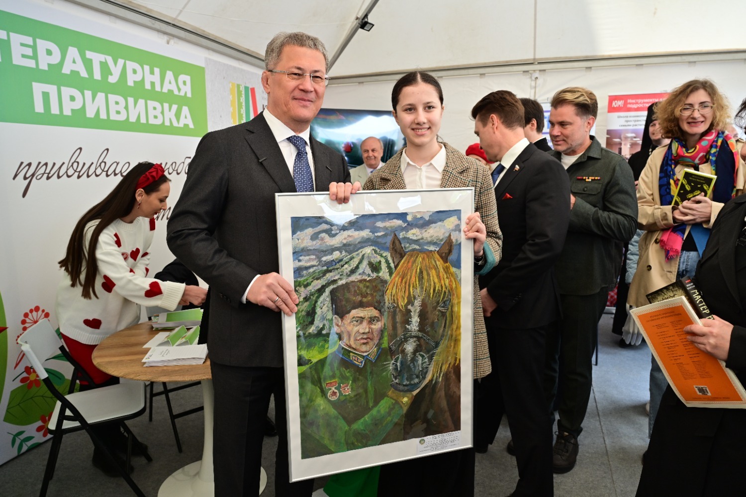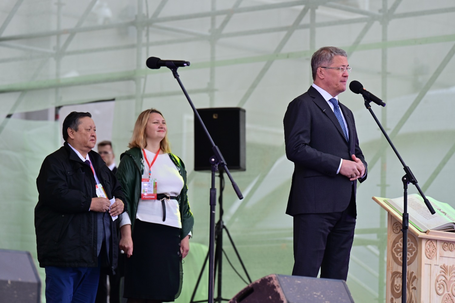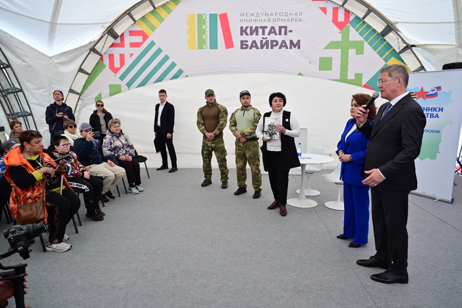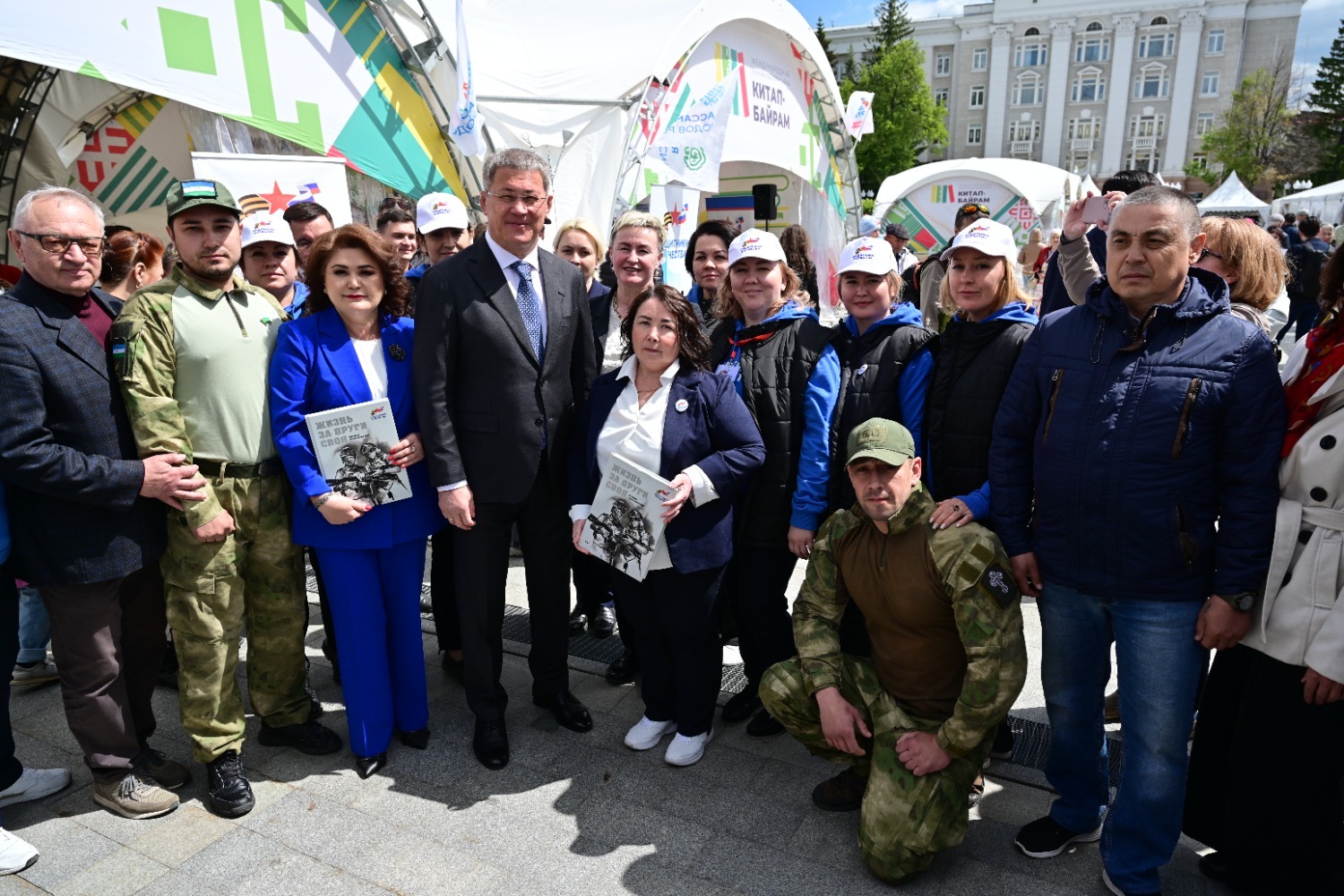 — Очень хорошо, что мы проводим «Китап-байрам» рядом с памятником генералу Шаймуратову. Когда я общаюсь с родными и близкими наших ребят погибших, всегда им говорю, что это памятник и их детям. На памятнике, вы видели, написано: «Всем павшим в боях за Родину посвящается». Я сегодня сам кланяюсь нашим ребятам погибшим. Они — наши братья, навсегда останутся в нашей памяти. Очень здорово, что здесь много молодежи. И пусть они читают, пусть они знают, что там происходит, понимают, что такое настоящая дружба, настоящий героизм, настоящий патриотизм. Там воюют такие же молодые ребята, которым по 20-25 лет, и они являются настоящими нашими героями. А нашим ребятам погибшим — всегда вечная слава и вечная память, — сказал Радий Хабиров.