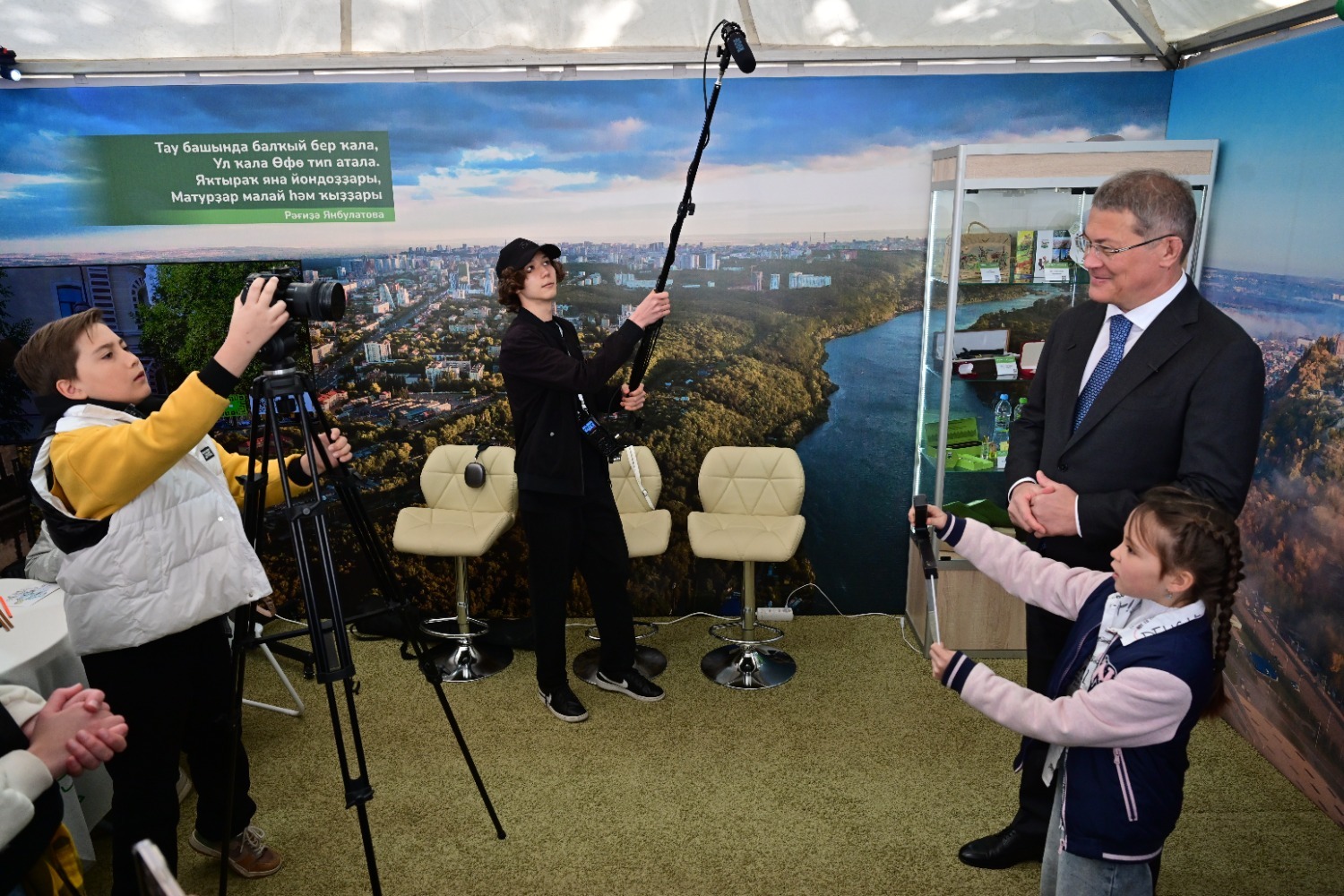 Съемочная группа «КиноДети», которая учится снимать короткометражное кино в городе Уфе, встретила Главу региона и пригласила в шатер «Уфа — 450». Дети школы Александра Просыпина, Айгиз Аккулов, Сафина Галимова и Мирон Кирин предложили запечатлеть момент вскрытия капсулы времени 12 июня и заложить новую капсулу 31 августа с пожеланиями Главы республики для будущего поколения на 500-летие Уфы.