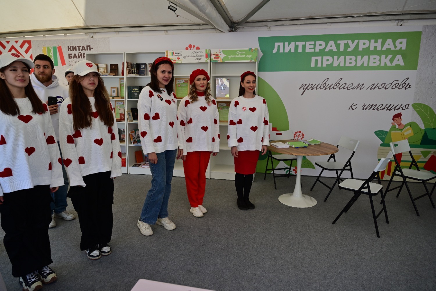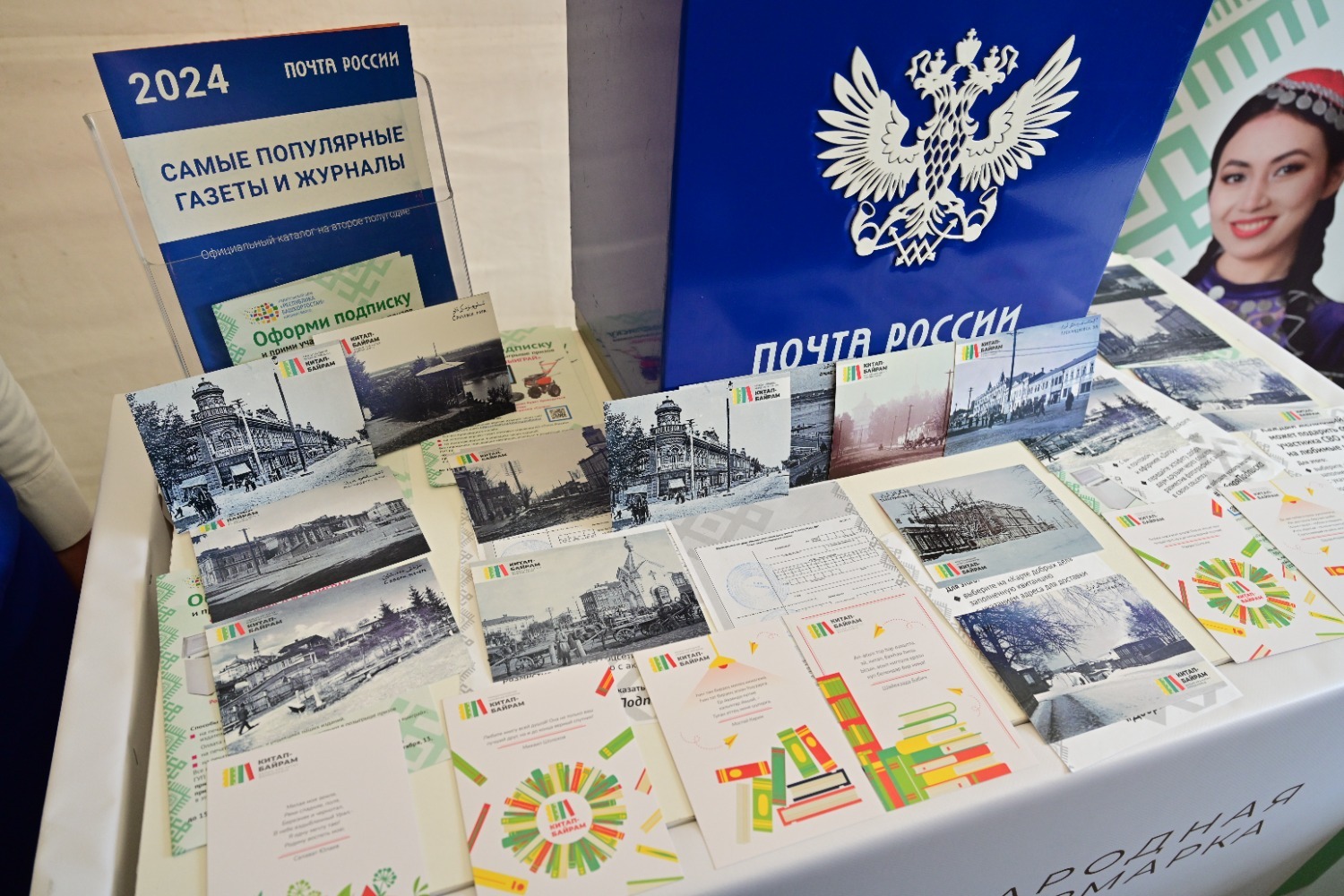 Одна из интересных площадок — «Почта «Китап-байрам». В рамках акции посетители ярмарки могут отправить открытку с литературными строчками себе или своим родным и близким.