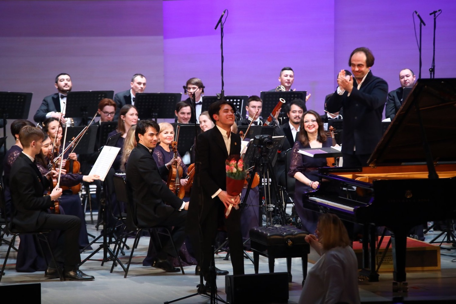 На сцене в этот вечер выступили также блистательные молодые солисты — лауреаты Международного конкурса имени Чайковского Стефания Поспехина (скрипка), Мария Зайцева (виолончель), София Виланд (флейта), а завершило программу первого вечера виртуозное выступление самого Дениса Мацуева.