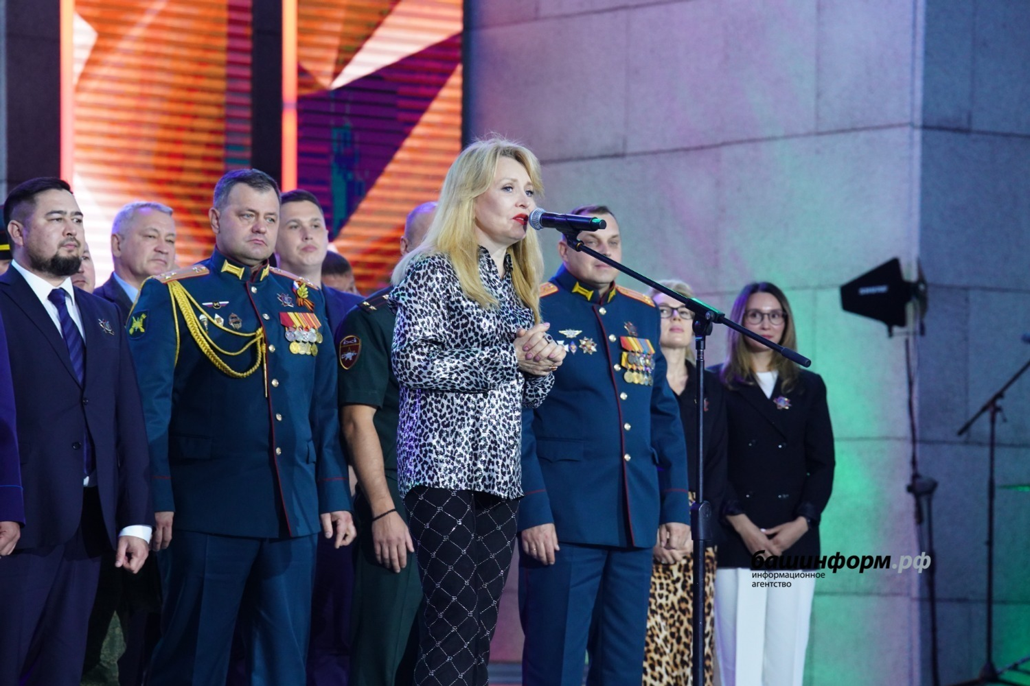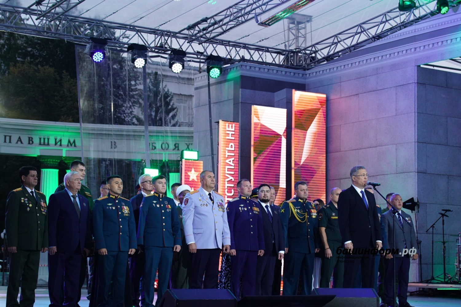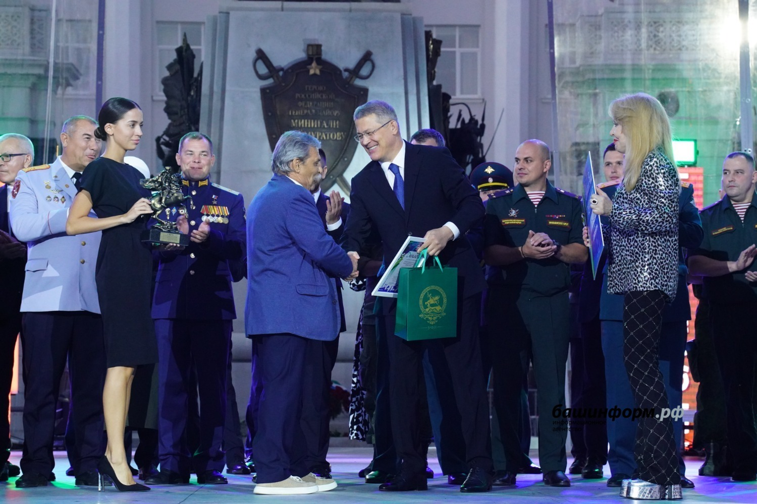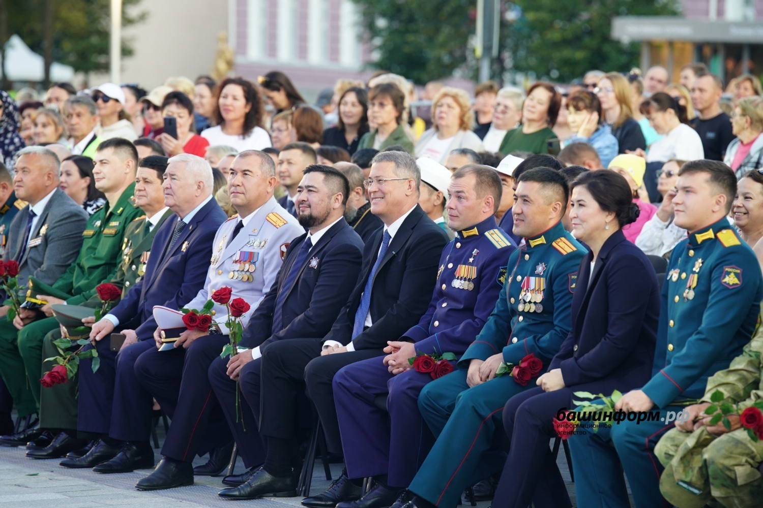 – Сегодня 125 лет со дня рождения нашего национального героя – генерал-майора Минигали Шаймуратова. Именно в этот день мы уже в третий раз проводим фестиваль патриотической песни. И правильно, что делаем это на Советской площади, где в феврале 1942 года Минигали Мингазовичу передали боевое знамя формирующейся 112-й Башкирской кавалерийской дивизии. Именно отсюда наши парни уходили на специальную военную операцию выполнять свой служебный долг. Благодарю гостей и участников фестиваля за те эмоции, которые вы нам подарили, особые слова благодарности председателю жюри Ольге Кормухиной, которую мы очень любим как артиста и уважаем как настоящего патриота своей Родины, – отметил в своем приветственном слове руководитель региона Радий Хабиров.