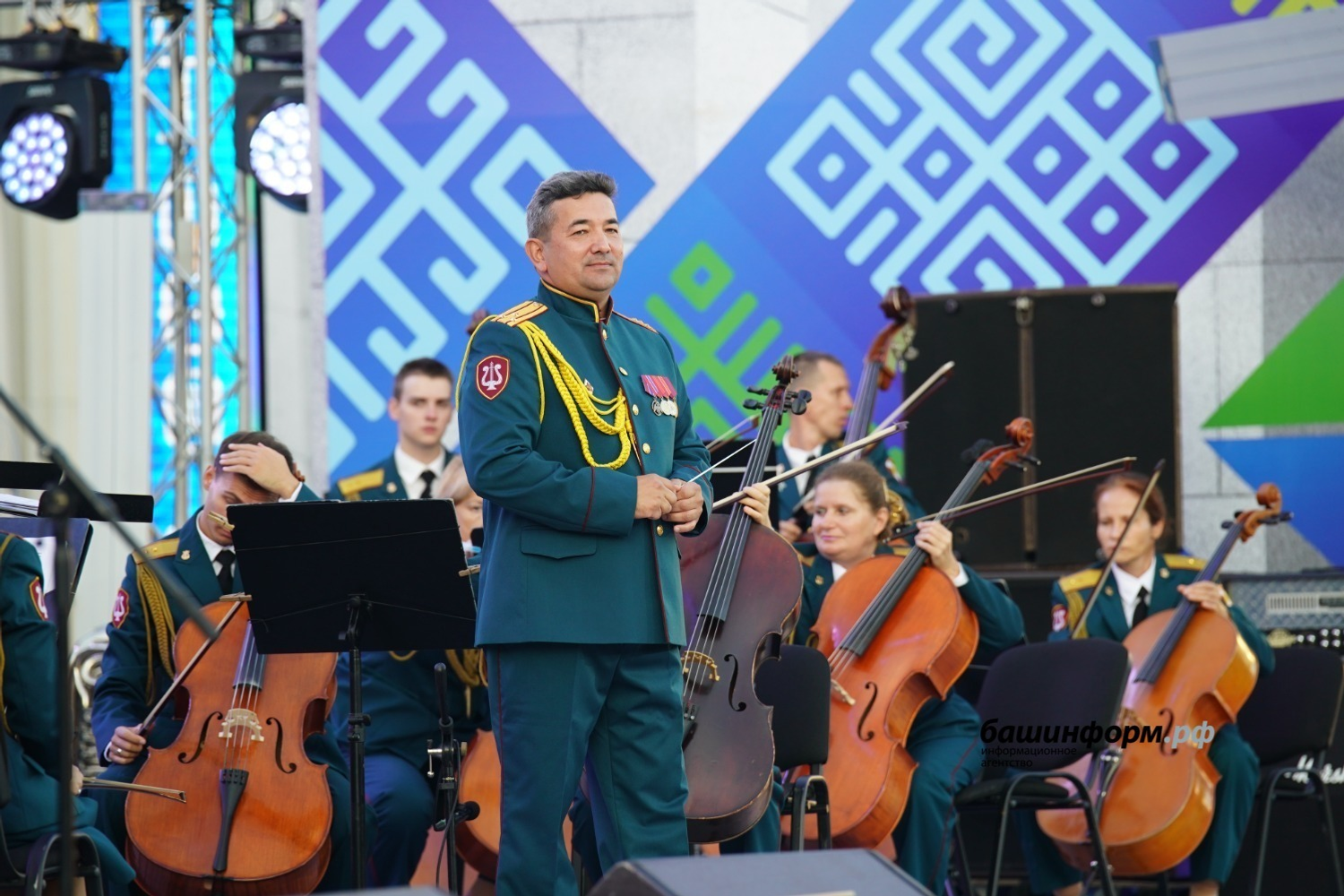 Благодарственным письмом отмечен начальник Образцово-показательного оркестра войск национальной гвардии России, заслуженный артист Башкортостана, полковник Азат Шахмухаметов.