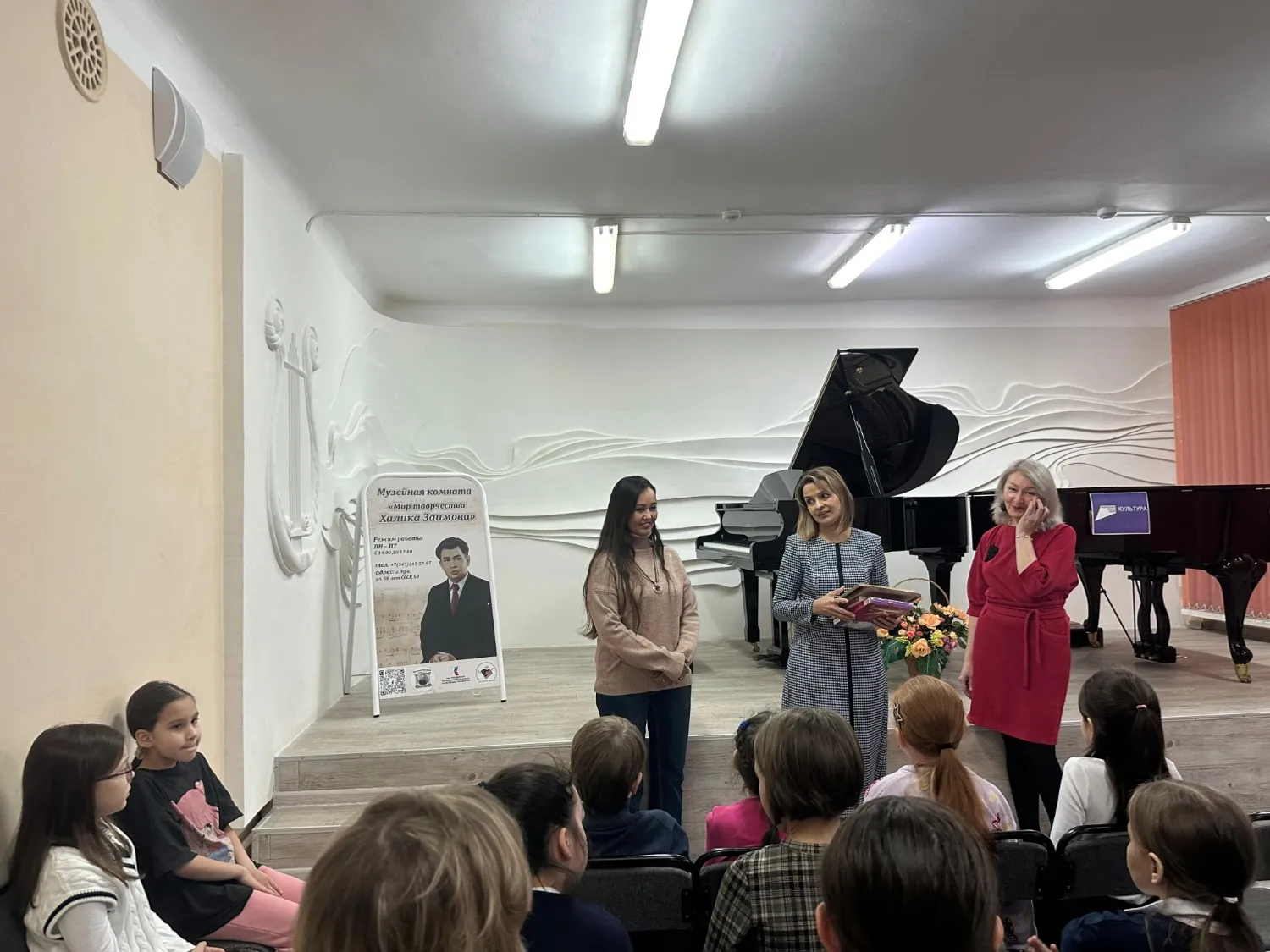 Писатель подарил ребятам одну из книг из своей библиотеки с автографом. Книга займет место в музейной комнате известного башкирского композитора Халика Заимова. О ее открытии в ДМШ № 13 ранее сообщал «Башинформ».