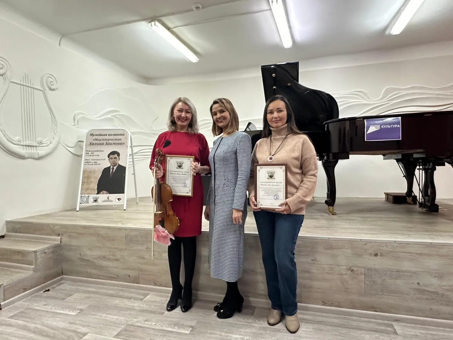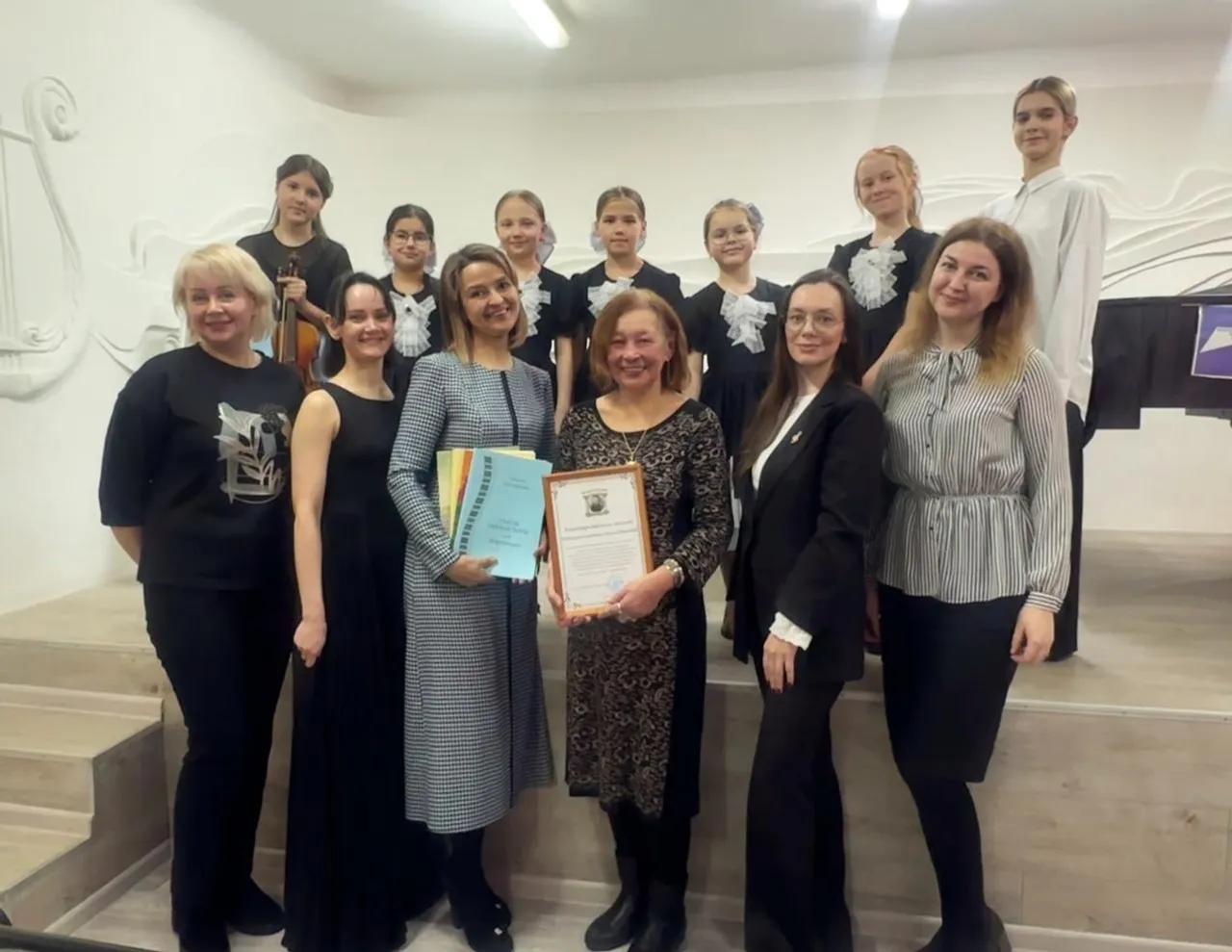 По итогам встречи директор ДМШ Гульнара Шадмонова вручила журналисту благодарственное письмо.