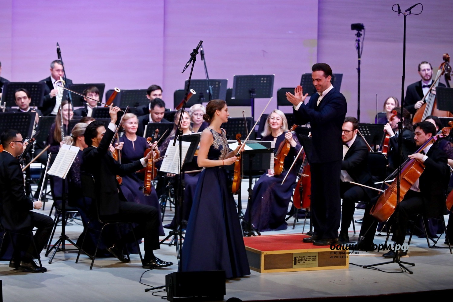 В исполнении солистки и Госоркестра РБ под управлением маэстро Дмитрия Крюкова прозвучал Скрипичный концерт ми минор Ф. Мендельсона-Бартольди, который стоит в одном ряду с великими концертами Баха, Моцарта, Бетховена и Чайковского. Одно из самых популярных и мелодичных произведений классики вызвало бурные овации слушателей. Продолжила программу легендарная симфоническая сюита «Шехеразада» Н. Римского-Корсакова — гимн величию природы и всепобеждающей силе человеческой любви, прославлению творческого духа. После долгих аплодисментов на бис Госоркестр исполнил «Половецкие пляски» из оперы Бородина «Князь Игорь».