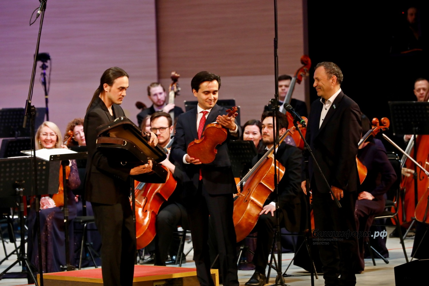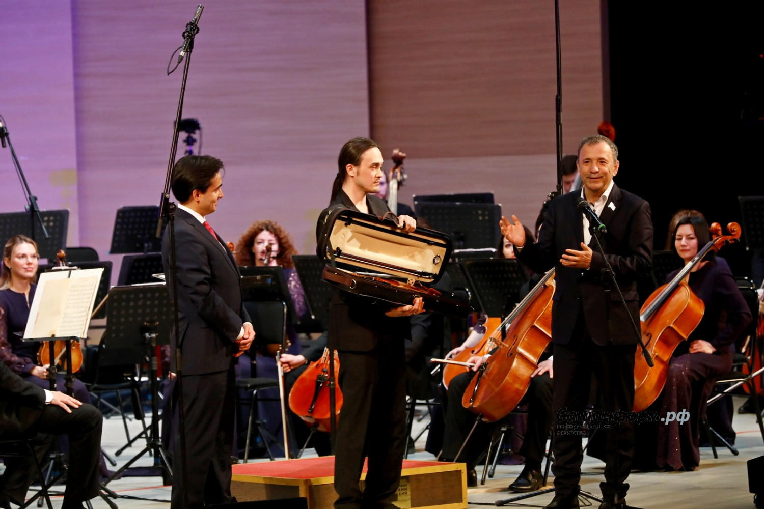 Даритель Наталья Орлова лично не смогла присутствовать на мероприятии, но ведущая вечера Эльмира Ижболдина зачитала ее приветствие. «От всей души приветствую вас и выражаю искреннюю признательность вам и вашему коллективу за высокий профессионализм, преданность искусству и вклад в сохранение и развитие музыкальной культуры Республики Башкортостан и всей нашей страны. Ваше мастерство, талант и творческая энергия дарят людям радость, вдохновение и чувство гордости за наше богатое культурное наследие. Каждое выступление оркестра — это не просто концерт, а настоящий праздник музыки, объединяющий сердца слушателей, — говорится в тексте приветствия. — В знак глубокой признательности за ваши заслуги в сохранении культуры и значительный вклад в развитие классической музыки, с радостью передаю в дар оригинальную скрипку работы выдающегося российского мастера Игоря Улицкого. Желаю вам новых творческих свершений, неиссякаемого вдохновения, крепкого здоровья и благополучия. Пусть ваш талант продолжает освещать путь к высокому искусству, а зрители всегда встречают оркестр бурными овациями».
