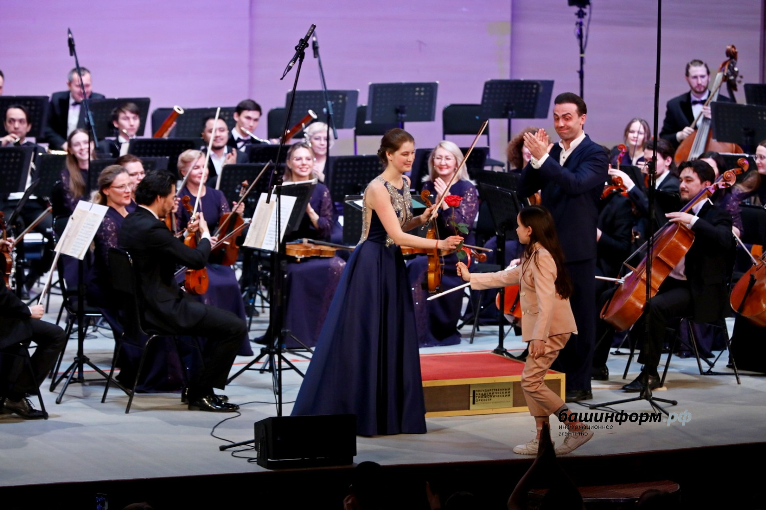 На презентации музыкальный инструмент был передан в руки концертмейстеру Госоркестра Ильшату Муслимову. В первом отделении концерта «Бессмертные инструментальные шедевры» вместе с оркестром выступила Арсения Сибилёва. Молодая российская скрипачка — победитель Молодежных Дельфийских игр России и стран СНГ в 2018 и 2019 гг., II международного конкурса Jumeirah Sounds (Дубай, 2018), XV Международного конкурса молодых музыкантов в номинации «Струнные инструменты» (Москва, 2019) и многих других.