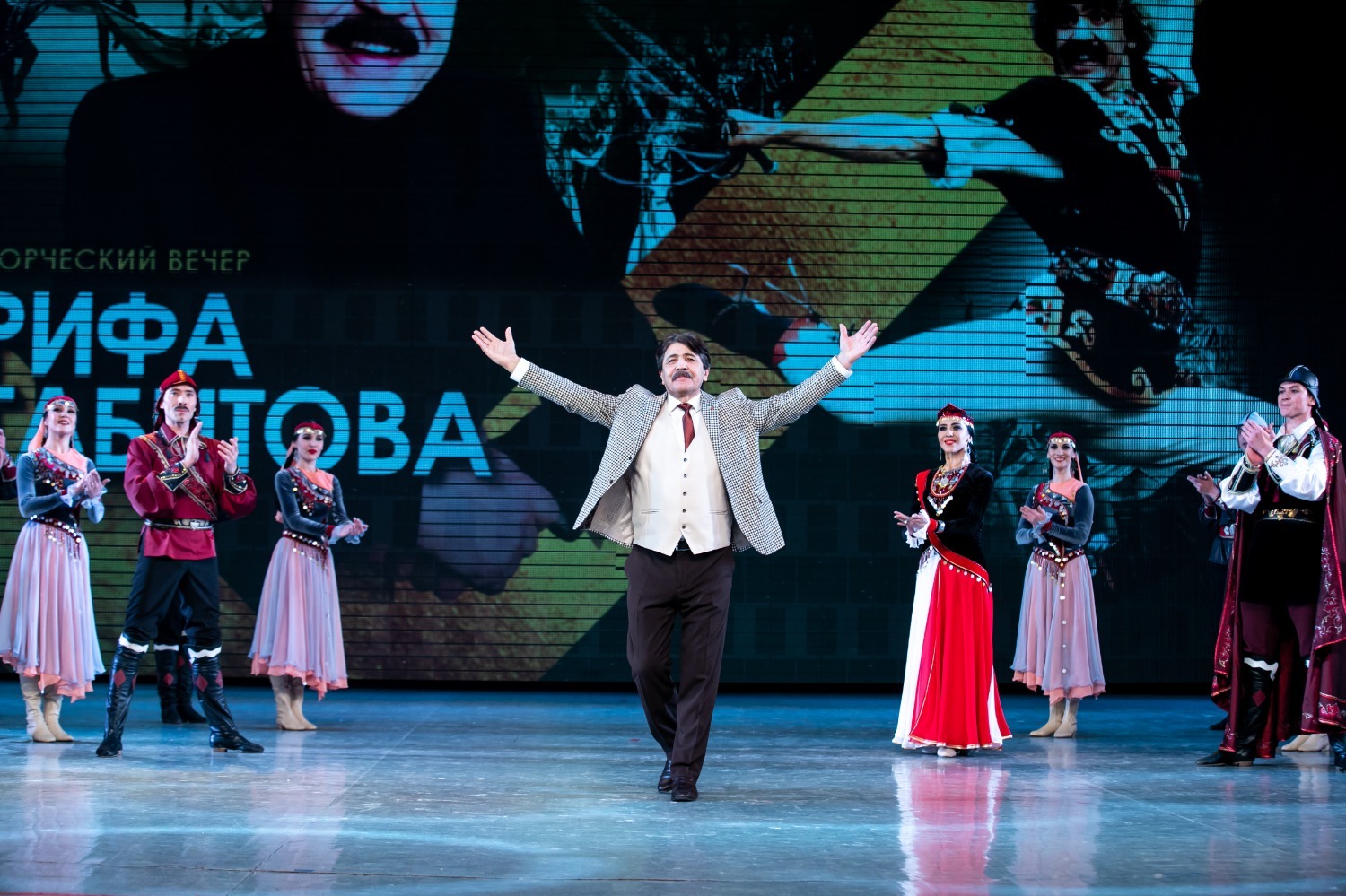 — С Рифом Фатиховичем мы протанцевали вместе на протяжении всей нашей творческой деятельности, начиная с 1974 года. Мы прошли вместе большой путь, побывали во многих странах. Благодаря его идеям в ансамбле появились новые танцы, над постановкой «Медного каблука» мы работали вместе. Нам было очень приятно открывать концертную программу в Кремлевском дворце танцем «Тарханы», — сказал репетитор по балету, народный артист РБ, заслуженный артист РФ Рим Абдульманов.