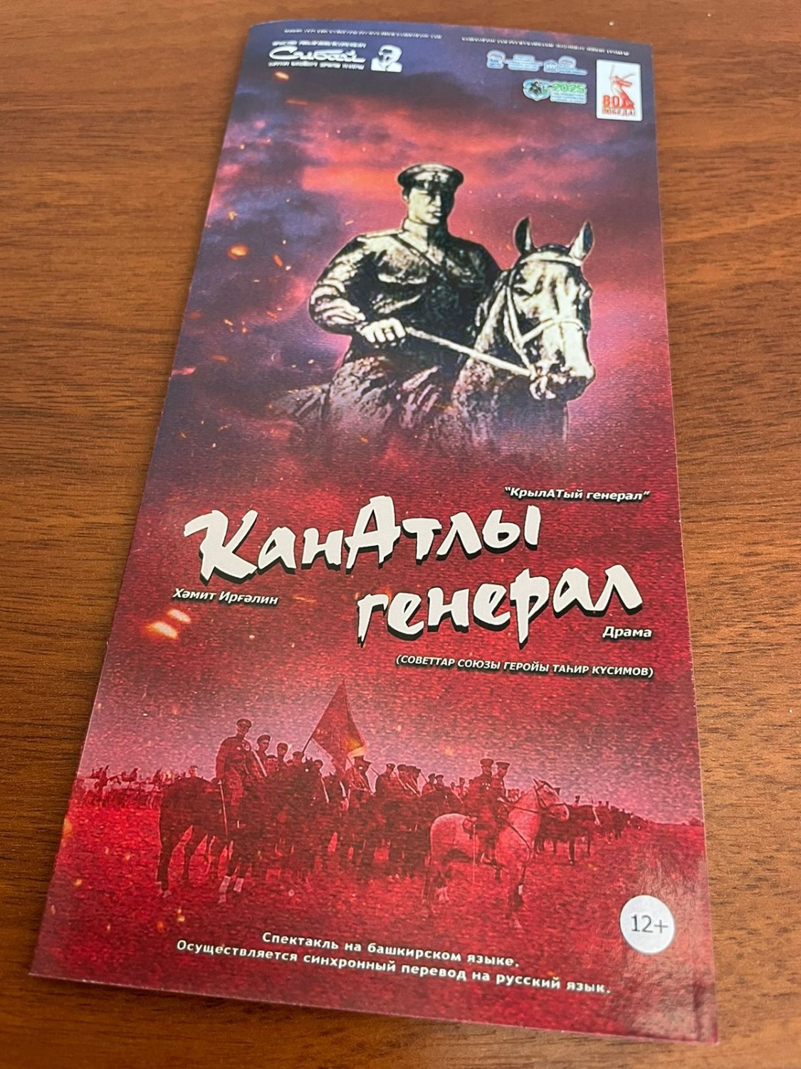 В Сибае состоялась премьера спектакля «КрылАТый генерал». В год 80-летия Победы в Великой Отечественной войне главный режиссер Сибайского башдрамтеатра имени Арслана Мубарякова Денис Нургалин поставил спектакль по пьесе Хамита Иргалина.