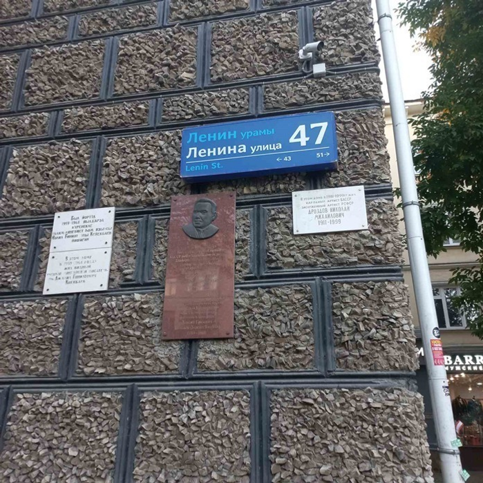 Пятиэтажное кирпичное здание построено в 1959 году. 23 октября 1981 года в Уфе у дома состоялся митинг, посвященный открытию мемориальной доски. На ней золотом выделяются слова: «В этом доме в 1959–1968 годах жил видный ученый, лингвист и писатель Джалиль Гиниятович Киекбаев».