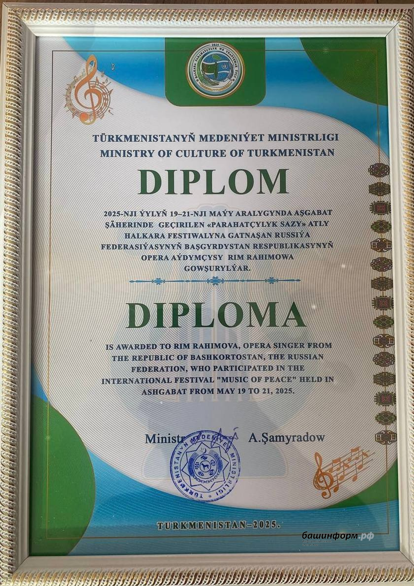 Солист Башоперы Рим Рахимов принял участие в Международном фестивале «Музыка мира». Мероприятие прошло 19-20 мая в Туркменистане, сообщает пресс-служба театра.