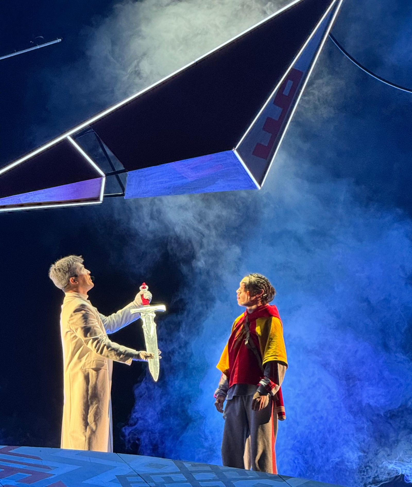 Режиссер также отметил, что для инсценировки спектакля были отобраны самые яркие оригинальные стихотворные строки из эпоса, остальное изложено прозаическим текстом. Отметим, что для русскоязычного зрителя осуществляется синхронный перевод.
