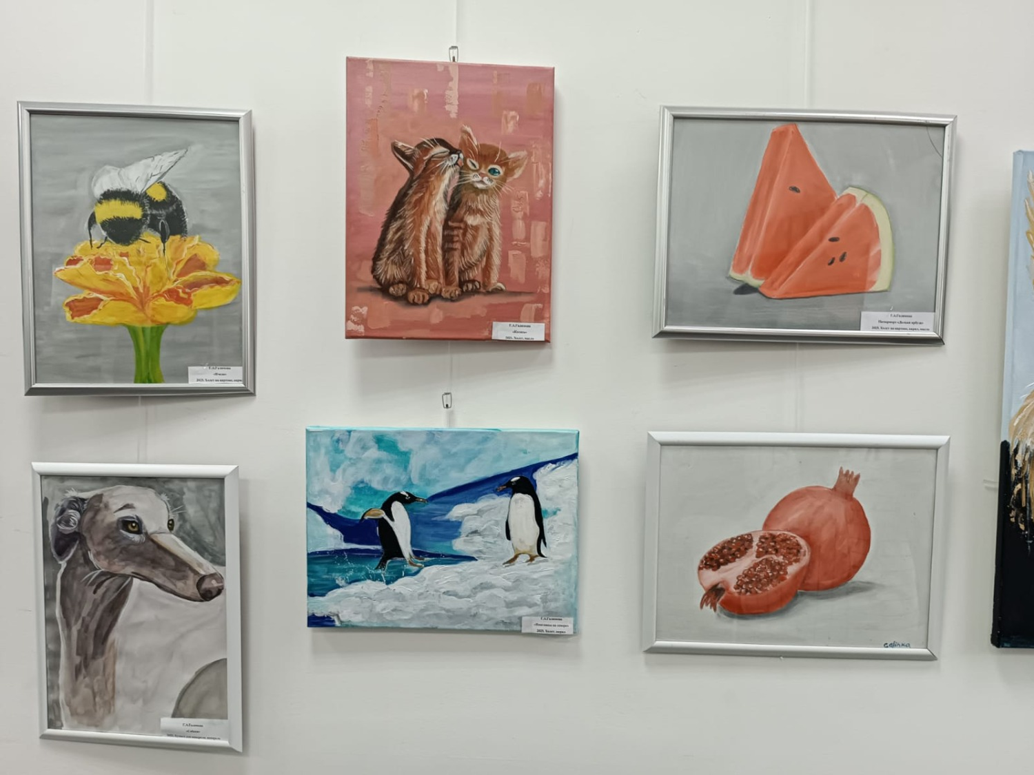 На выставке представлено 47 картин Галины Галимовой в разных жанрах и техниках — натюрморты, портреты, животные, птицы, природа, написанные маслом, акварелью, акрилом.