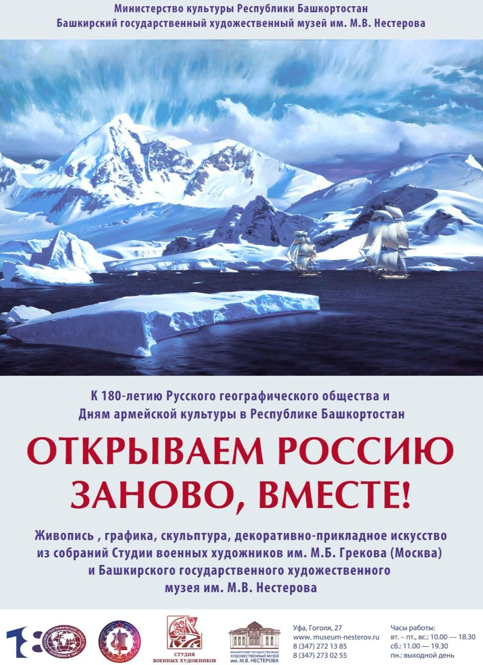 «Объединившая в своей экспозиции произведения выдающихся российских и башкирских художников, воспитывающая любовь к Родине, духовность и патриотизм, выставка „Открываем Россию заново, вместе!“ — уникальное событие в истории культуры и искусства Башкортостана, — отметили в пресс-службе музея. — Обращение к страницам великих открытий и освоения новых земель, восхищение природой России и её людьми — созидателями и тружениками — придаёт выставке высокий эмоциональный накал и не может оставить равнодушным ни одного зрителя».