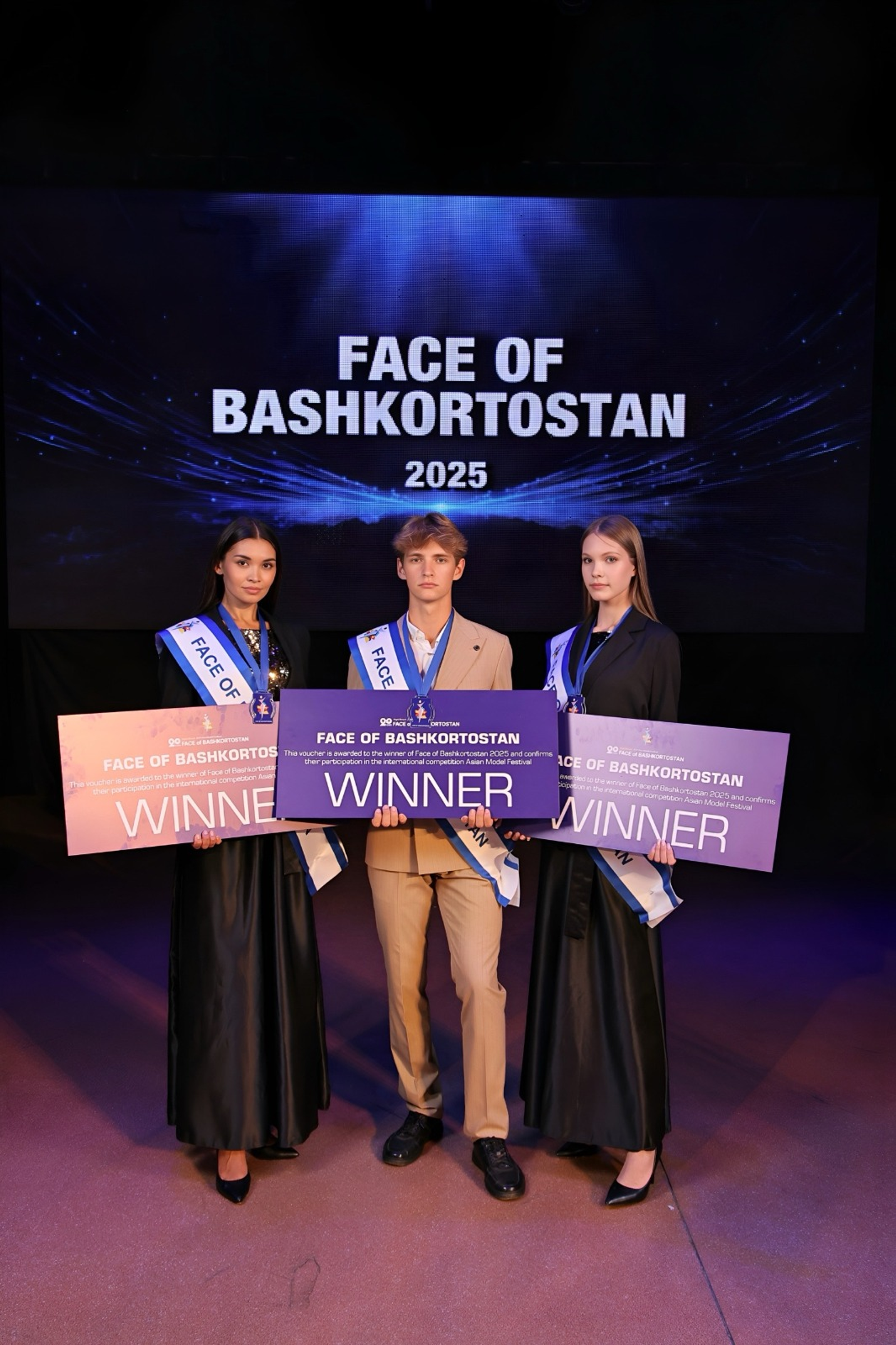 По итогам конкурса победителями национального отбора и обладателями модельного титула Face of Bashkortostan-2025 стали Луиза Эшрокова и Екатерина Киселева (в женской категории) и Ярослав Ткаленко (мужская категория).