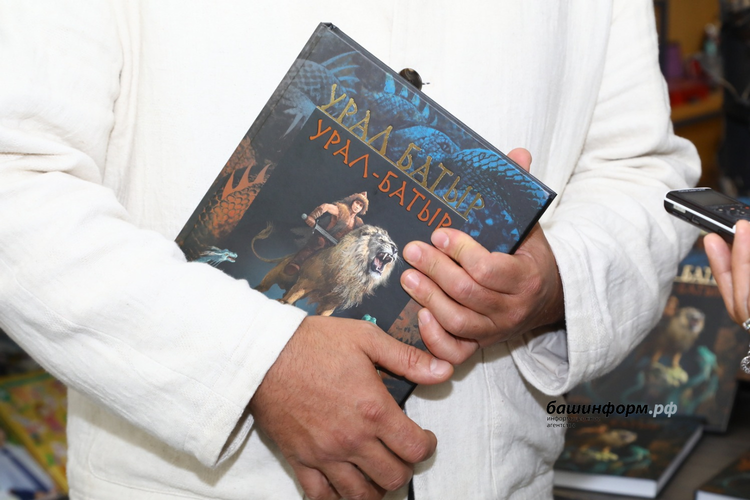 — В моей коллекции книга «Урал-батыр» есть с самого раннего детства, — поделился с «Башинформом» Ринат Рамазанов. — А сюда я пришел за большим количеством книг. Буквально вчера мы прилетели с «Интервидения» и за время пребывания в Москве встречались с представителями нашего лейбла МТС и представителями радиостанций. С октября по декабрь мы едем в наш первый российский тур от Калининграда до Краснодара. В преддверии тура нам предложили сделать розыгрыш книг с нашим эпосом.