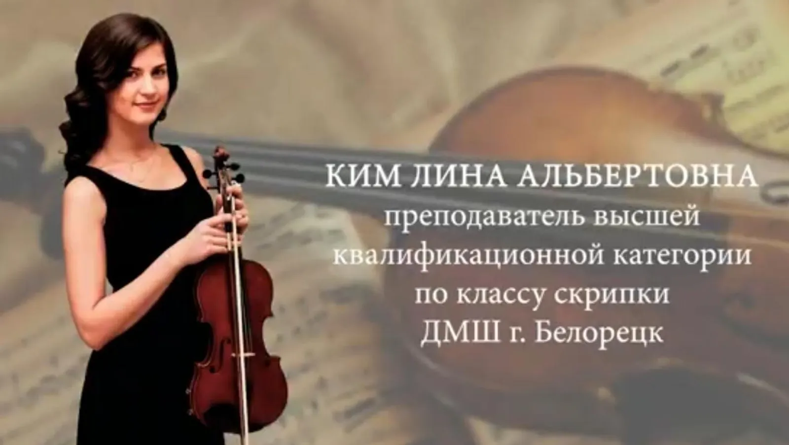 Педагог по классу скрипки из Детской музыкальной школы города Белорецка Лина Ким стала победителем конкурса на присуждение премий лучшим преподавателям в области музыкального искусства детских школ искусств, училищ и вузов. Премии присуждались минкультом России за достижения в педагогической деятельности в 2025 году.