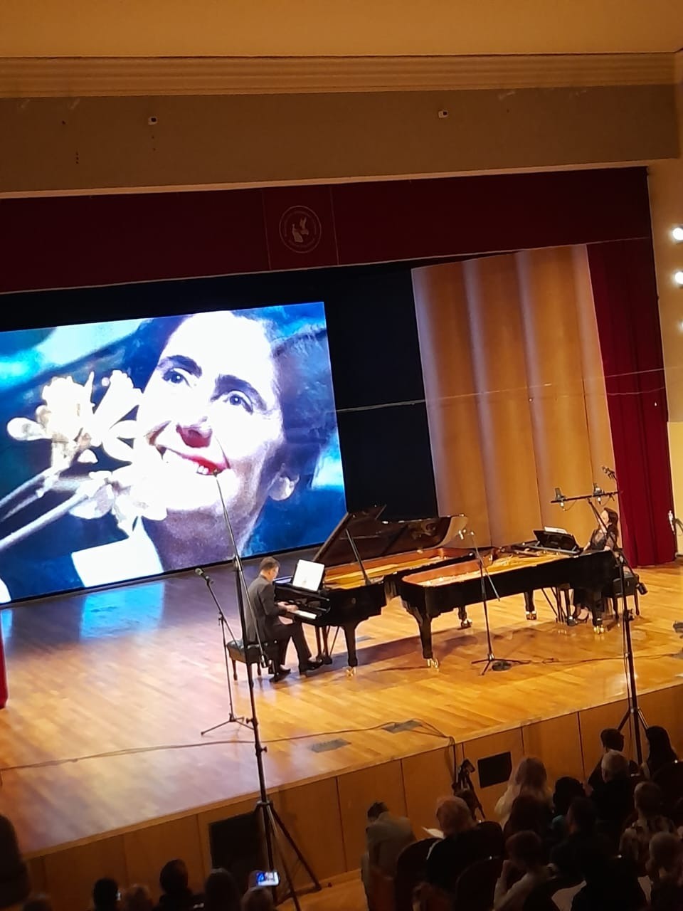 В программе прозвучали фрагменты бесед Марии Степановны Гамбарян с Рустамом Раджаповичем. Он также сыграл в честь своего учителя произведения Рахманинова - Романс и Тарантеллу из Второй сюиты для двух фортепиано в дуэте с доцентом РАМ им. Гнесиных Лидией Резниковой.