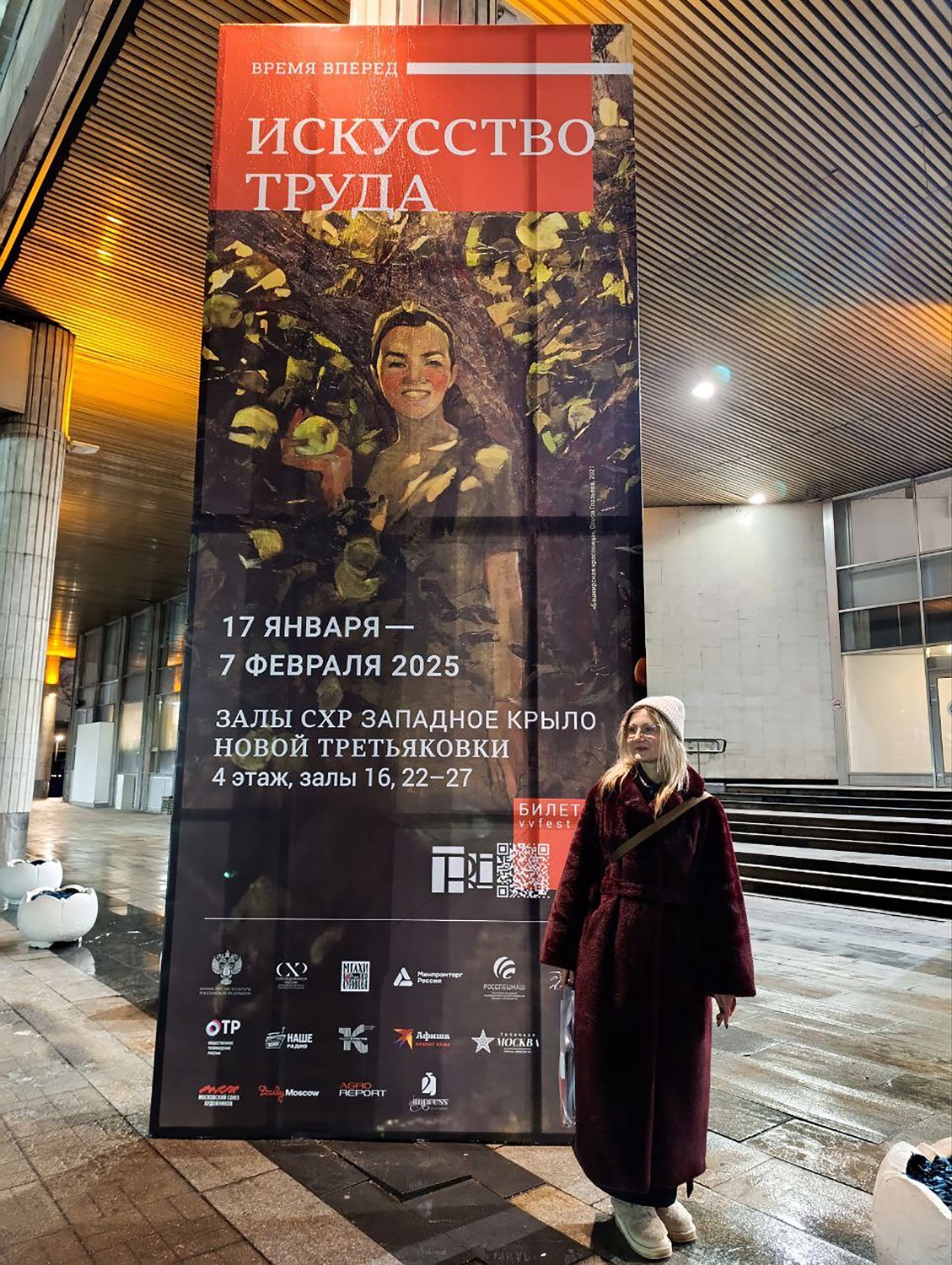 В самом начале 2025 года работа художницы «Башкирская красавица» стала афишей выставки «Искусство Труда» в Новой Третьяковской галерее.