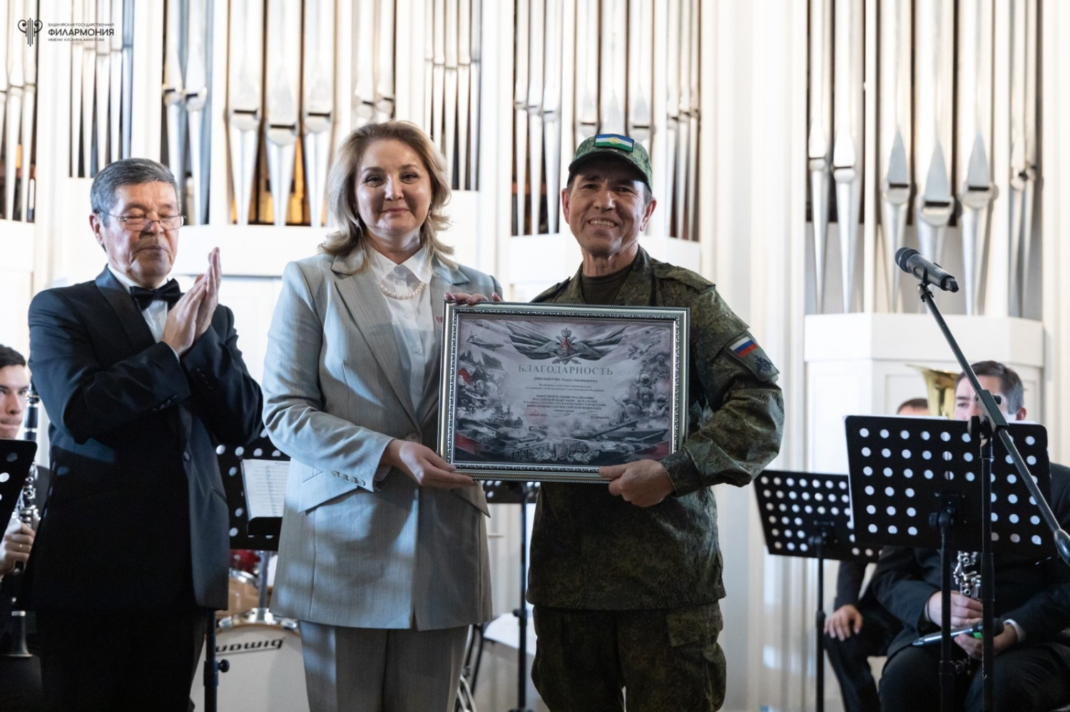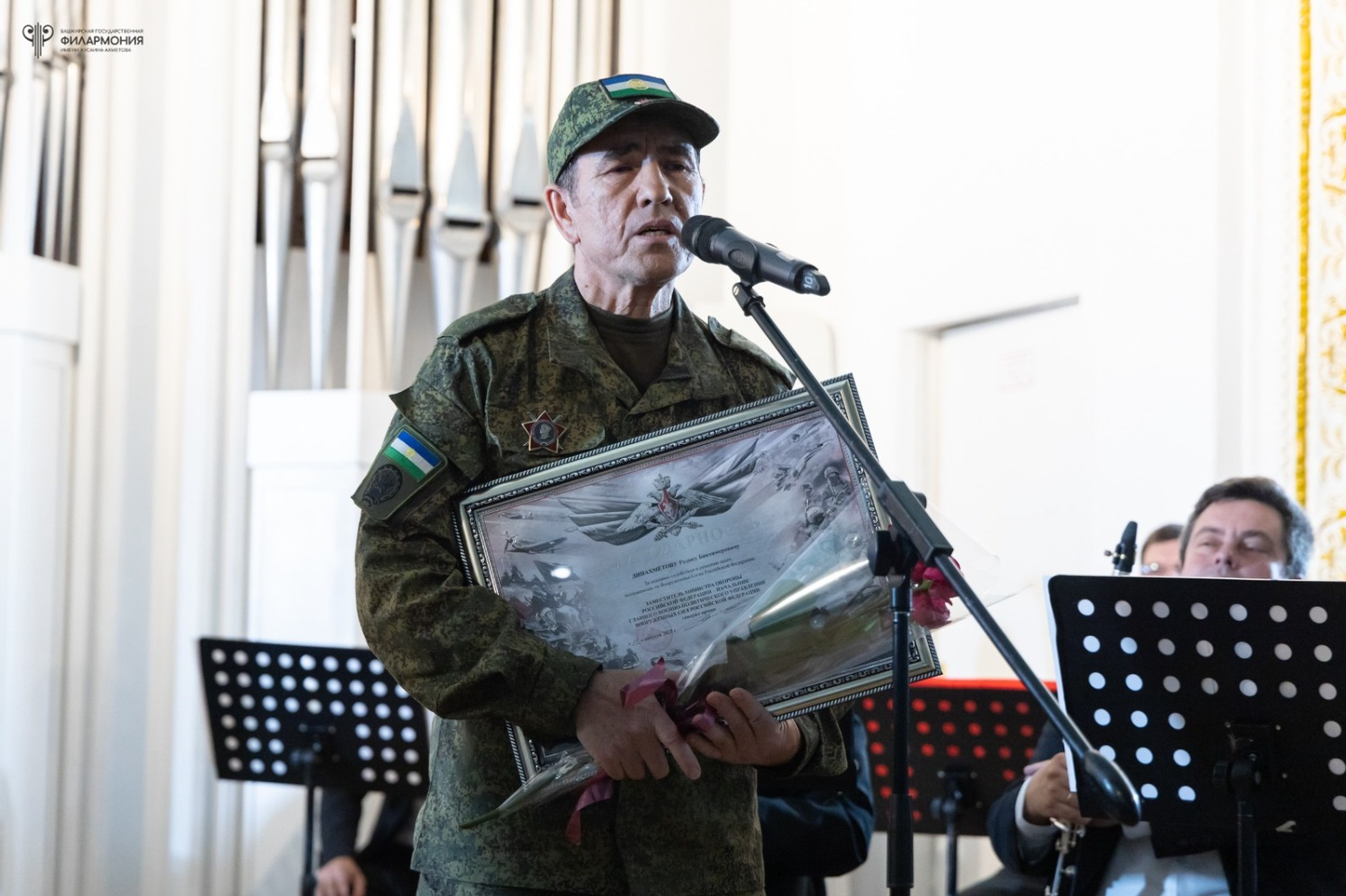– У присутствующих навернулись слезы на глаза, когда он вышел в полном обмундировании и на овации зрителей поклонился залу, преклонив колено. Вместе с Артуром Шариповым они исполнили песню, которая наполнила зал особым смыслом — «Марш 31-го полка «Башкортостан» авторства Олега Жданова и Олега Миннегалиева. В едином порыве зал встал, почтив имена героев. Это был момент глубокого единения и гордости, – рассказали «Башинформу» в пресс-службе Башгосфилармонии.