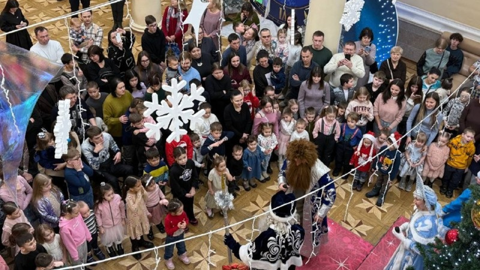 На утреннике в Колонном зале филармонии ребята встретились с Дедушкой Морозом и Снегурочкой, сказочными персонажами и девочками-снежинками, поучаствовали в интерактивных играх и танцевальном флешмобе. Вместе со сказочными героями зажгли красавицу-елку и кружились в новогоднем хороводе.