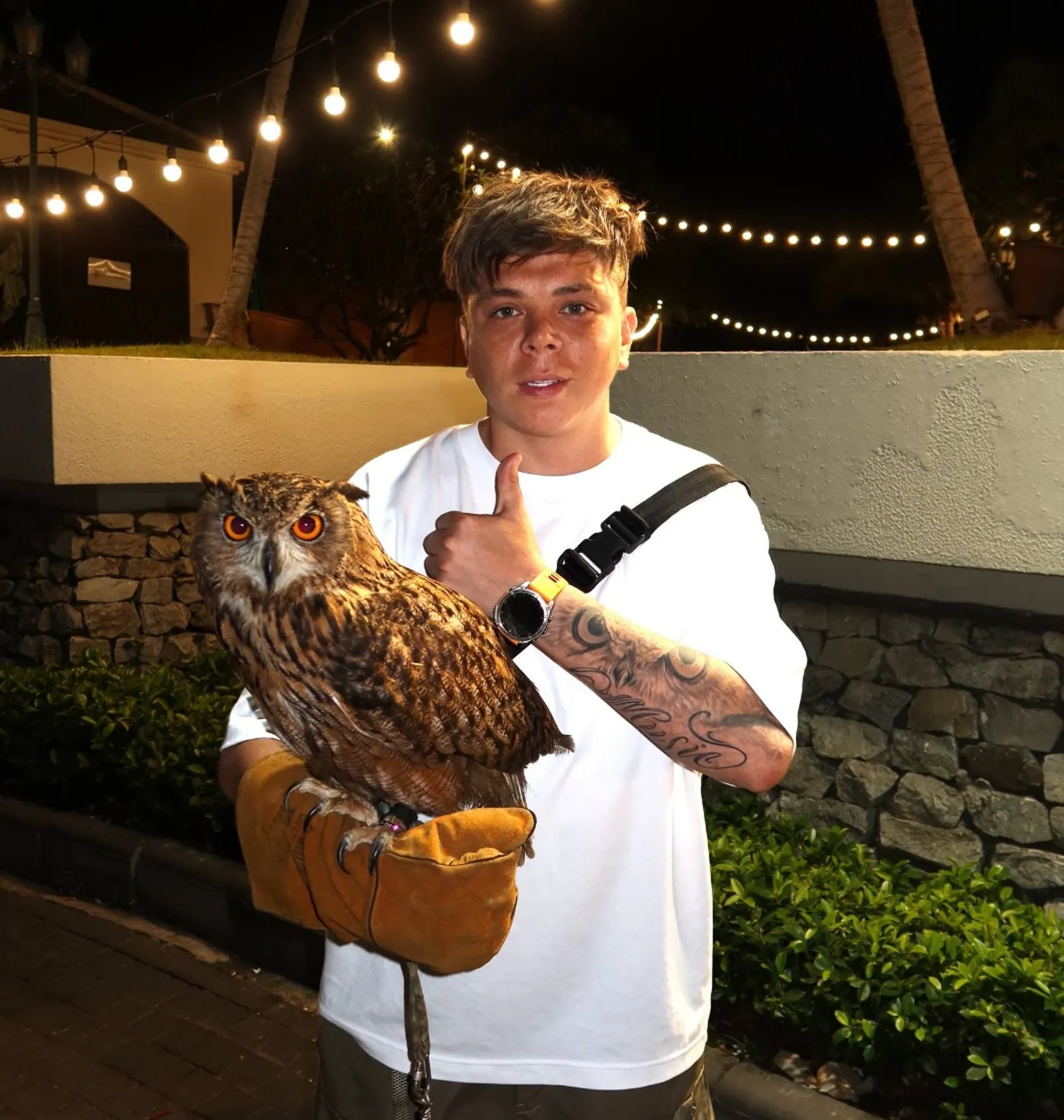 Любимые совы есть на обеих руках артиста. Также он уточнил, что давно перепутал день с ночью и, как совы, бодрствует ночью.