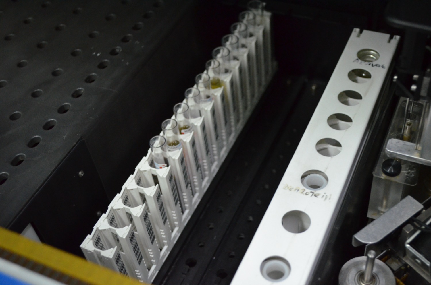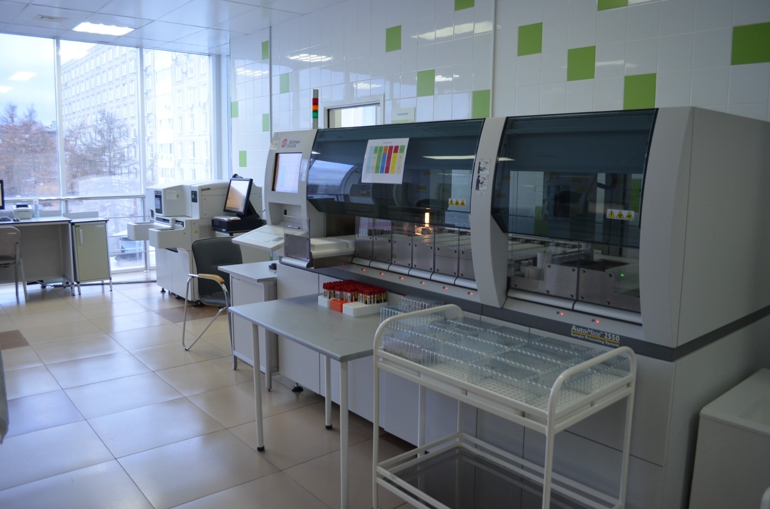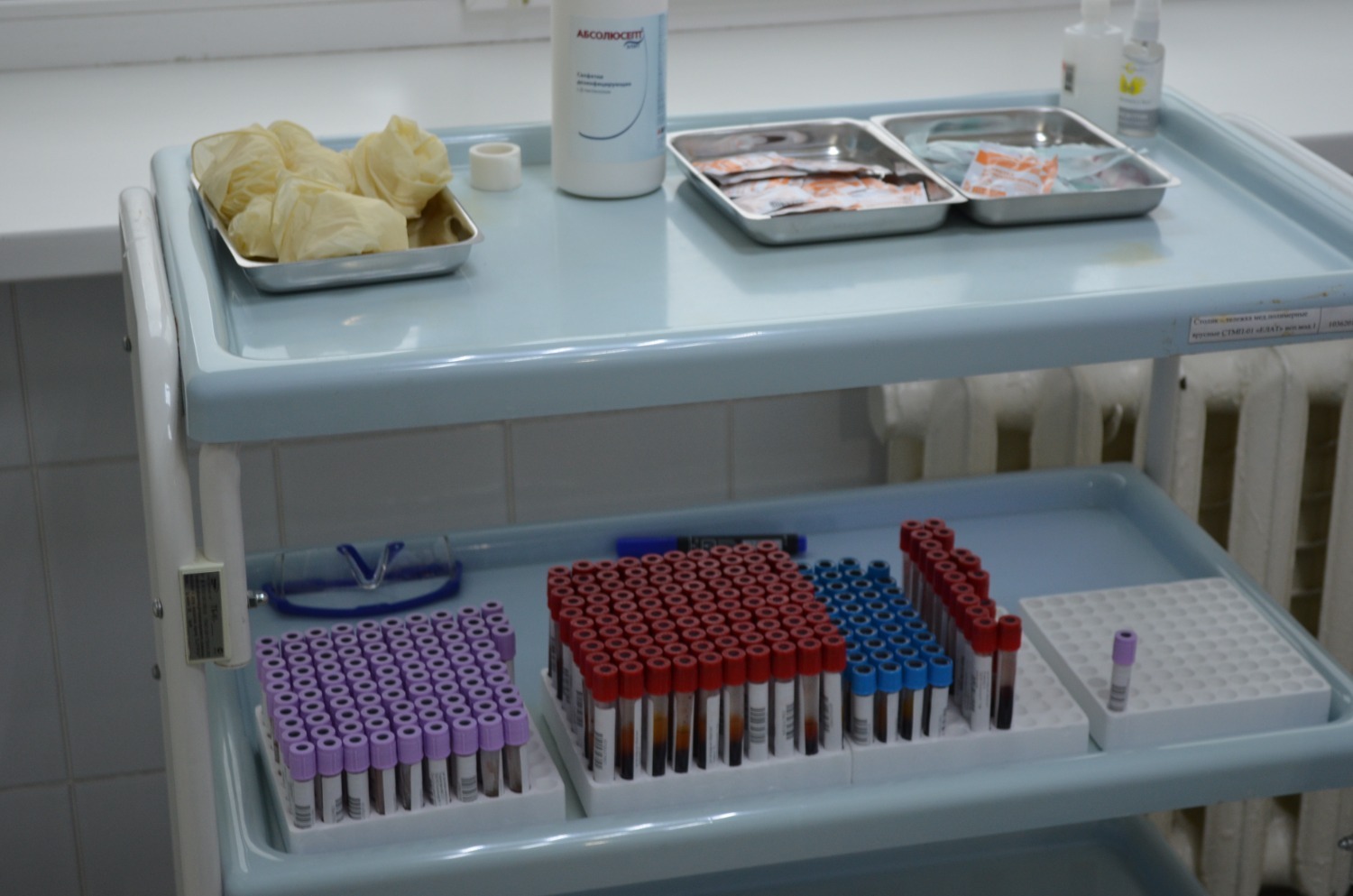 В просторном и обставленном по последнему слову техники клинико-диагностическом центре больницы №13 мы вновь «встретились» с термосумкой и нашими пробирками. Медработник обработал сумку специальным дезсредством. Нам показали «движение» биоматериала по лаборатории: из мини-холодильника его достали и повезли в «Центрифужную», где происходит прием, регистрация и сортировка проб.