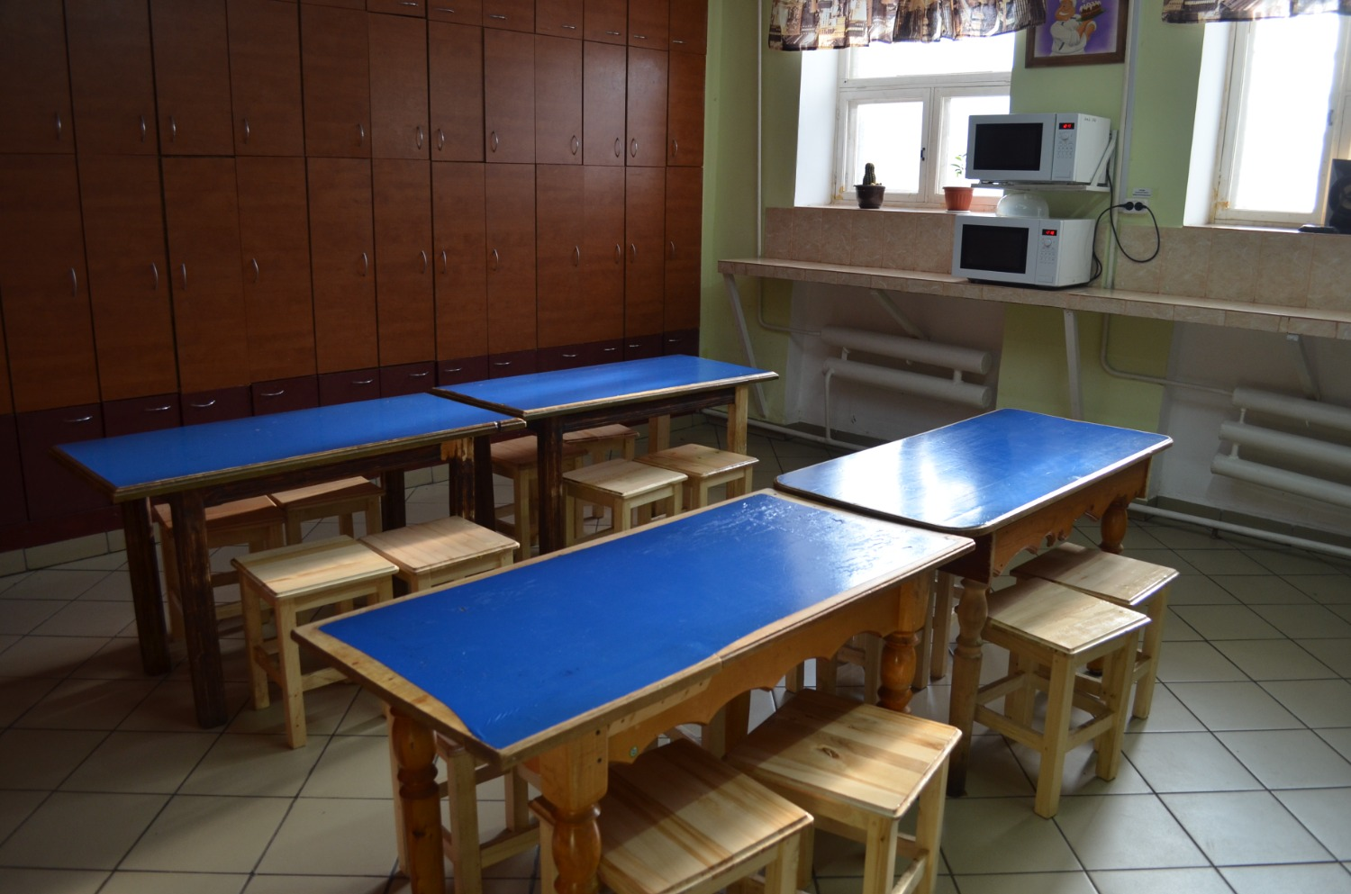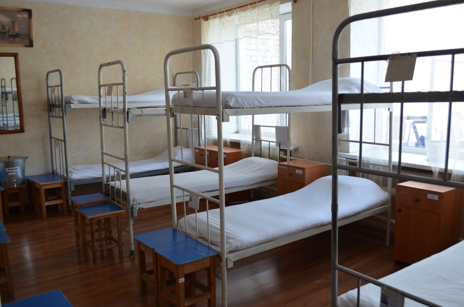 Корпус длинный, в нем есть комната отдыха со старинными деревянными стульями, телевизор, шахматы, нарды, книги. Душевая с двумя кабинами. Комната с раковинами, где начинается утро заключенных. Помещение для приема пищи с микроволновками, холодильниками, индивидуальными шкафчиками без замков. Раздевалка с верхней одеждой, обувью и шапками – все подписано, все индивидуально. Комната для сушки одежды. Несколько спальных комнат наверху и внизу с двухъярусными железными кроватями, тумбочками и стульями, с бадьей с водой. К кровати прикреплена карточка с данными осужденного и его фотографией. Комната телефонных переговоров – это место связи с внешним миром, с родными и близкими, друзьями и коллегами. Помещение для хранения личных вещей преступников, здесь же под запись выдаются бритвенные станки из закрытого на замок шкафчика и даже ножи и ножницы. Кабинет начальника отряда с портретом президента России.