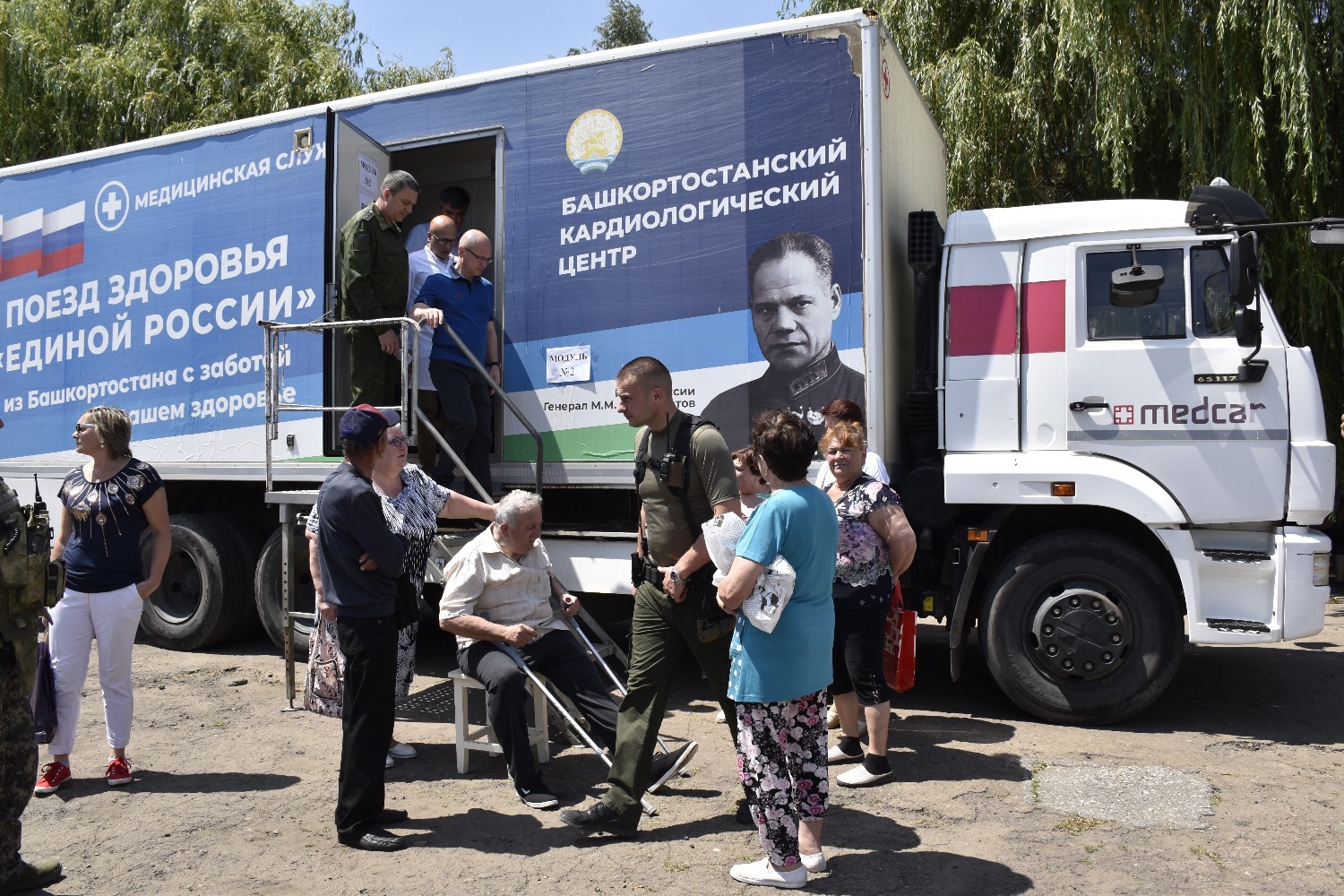 Не менее важно было решить и вопрос с медоборудованием. В поликлиниках и больницах Красного Луча оно, к сожалению, устаревшее. Поэтому в мае из Башкортостана в ЛНР были направлены три мобильных автопоезда: стоматологическая, кардиологическая и общая мобильная поликлиники на колесах, оснащенные современной медтехникой. В июне мы дополнительно поставили комплекты оборудования для трех детских стоматологических кабинетов.
