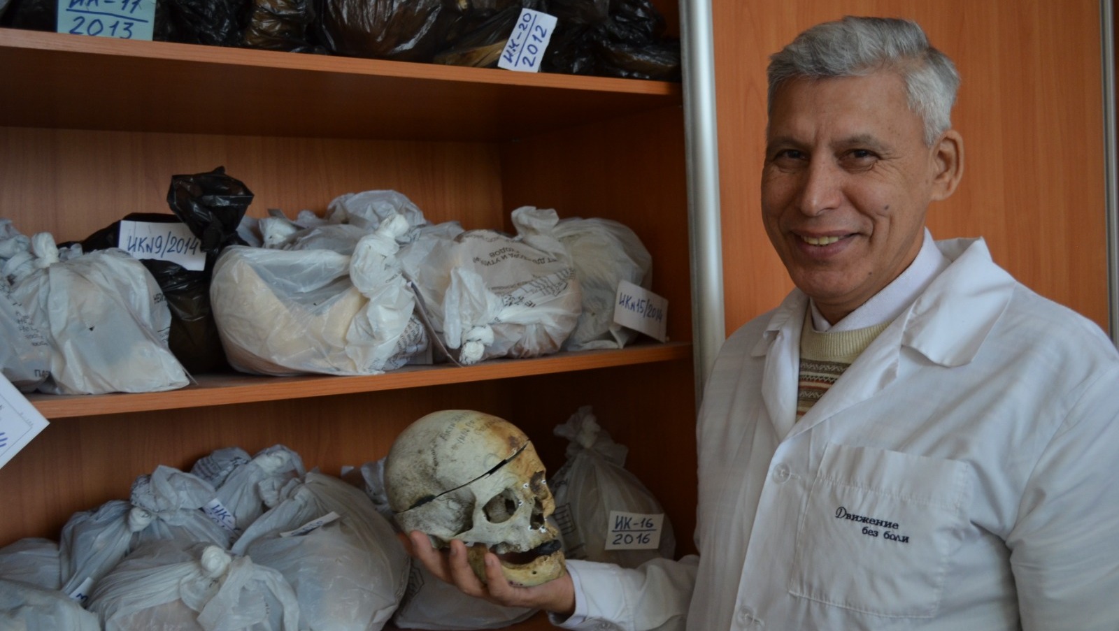 В кабинете специалиста сразу бросился в глаза большой шкаф. Оказалось, что он доверху забит человеческими черепами. Булату Зайнуллину привозят черепа со всей республики, а он по ним рисует, как мог приблизительно выглядеть человек.