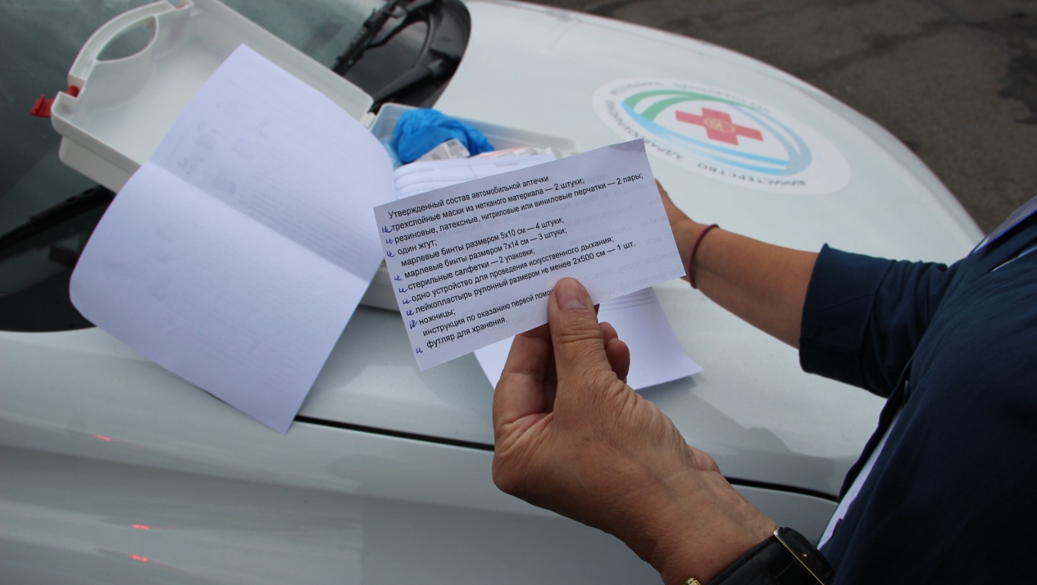 Врач Марина Фомина рассказала водителям об основных травмах, которые получают при авариях, первых действиях очевидцев по спасению пострадавших, а также вручила памятку, где прописан универсальный алгоритм оказания доврачебной помощи, и показала содержимое аптечки.