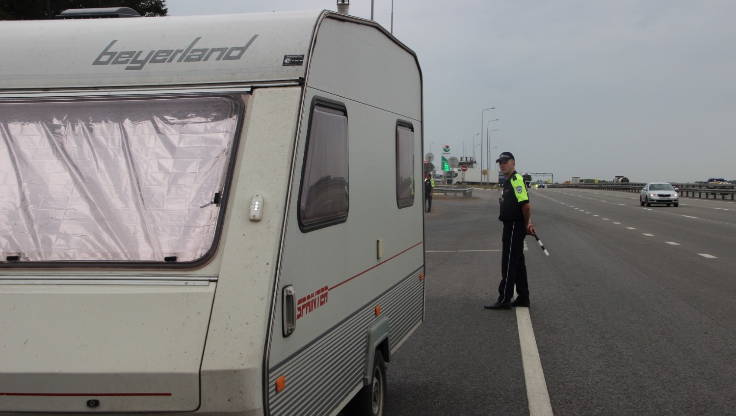 На дороге показался автомобиль с домом на колесах. Как выяснилось, семья путешествует с июня - отдыхали на море, через Башкирию возвращаются домой.