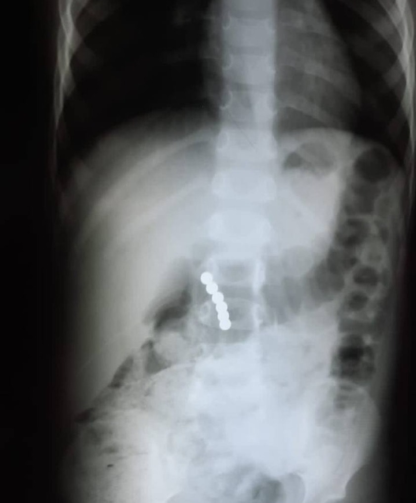В марте в больницу № 17 поступила годовалая девочка с жалобами. Ее родные сообщили, что в стуле ребенка нашли инородные тела — два колечка диаметром 0,4 см. В приемном покое маленькой пациентке провели рентгенографию брюшной полости в прямой проекции, где обнаружили тень инородного тела вытянутой формы. Было показано провести наблюдение в условиях стационара и ревизию стула. Кормление твердой пищей. На вторые сутки после поступления в каловых массах обнаружили инородные тела — два финишных оцинкованных гвоздя. Удалось избежать оперативного вмешательства. Девочку выписали на вторые сутки.